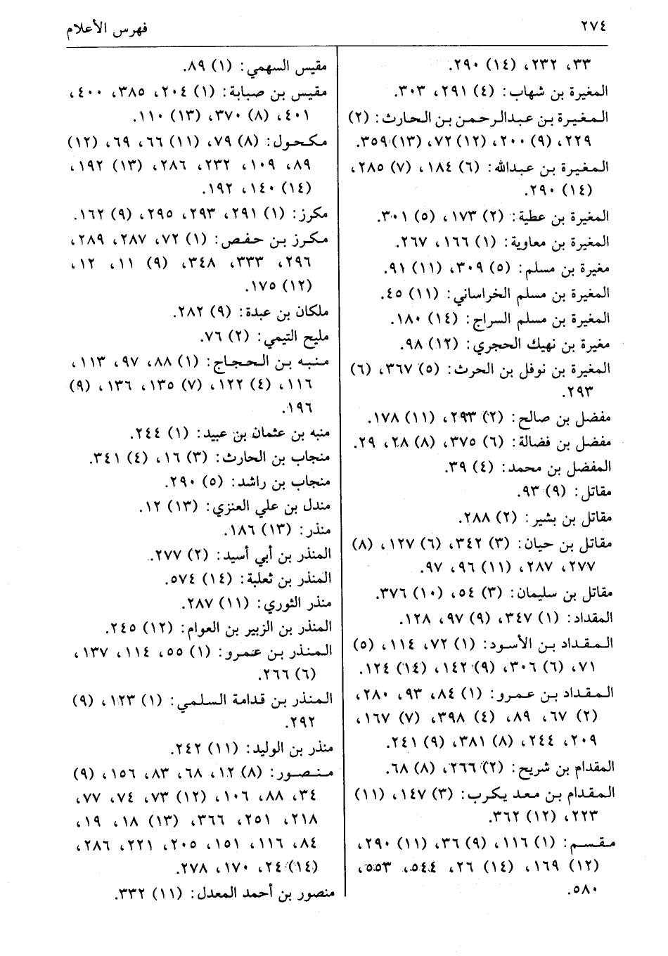 المغيرة بن عبد الرحمن بن الحارث: (2) 229، (9) 200، (12) 72، (13) 359، المغيرة بن عبد اللَّه: (6) 184، (7) 285، (14) 290.