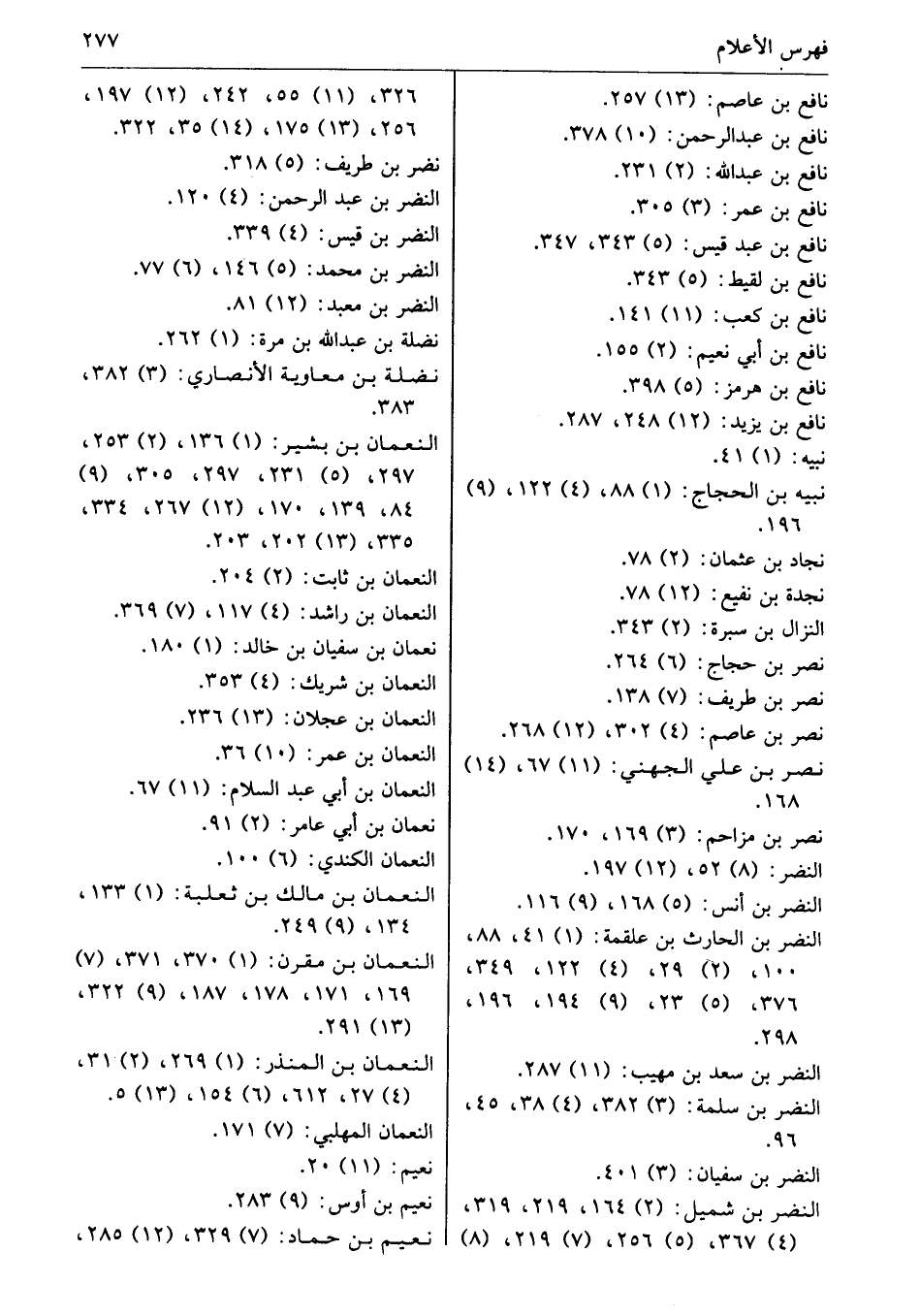 النعمان بن بشير: (1) 136، (2) 253، 297، (5) 231، 297، 305، (9) 84، 139، 170، (12) 267، 334، 335، (13) 202، 203.