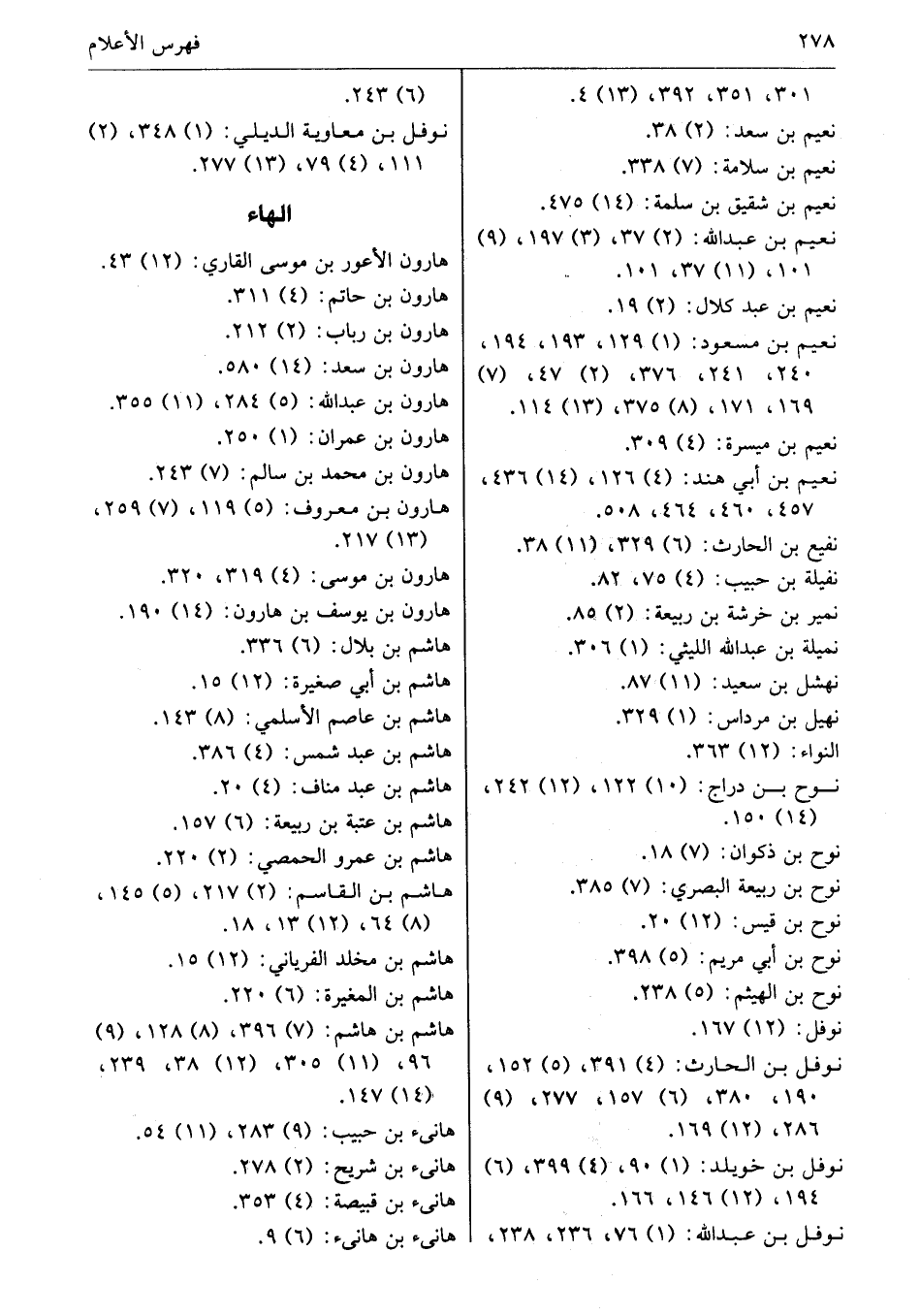 نوفل بن الحارث: (4) 391، (5) 152، 190، 380، (6) 157، 277، (9) 286، (12) 169.