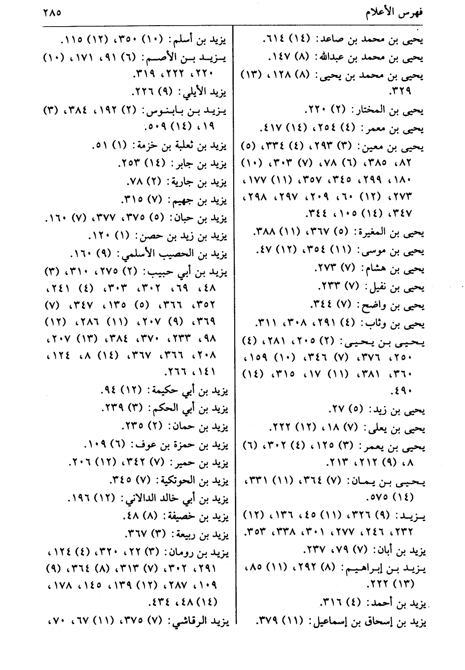 يزيد بن إسحاق بن إسماعيل: (11) 379. يزيد بن أسلم: (10) 350، (12) 115.