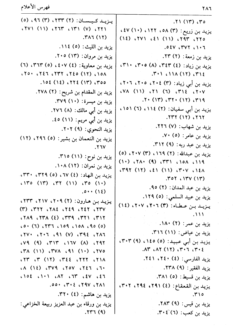 يزيد بن كعب: (6) 304. يزيد كيسان: (2) 233، (3) 96، (5) 221، (7) 131، 263، (11) 271، (12) 386.