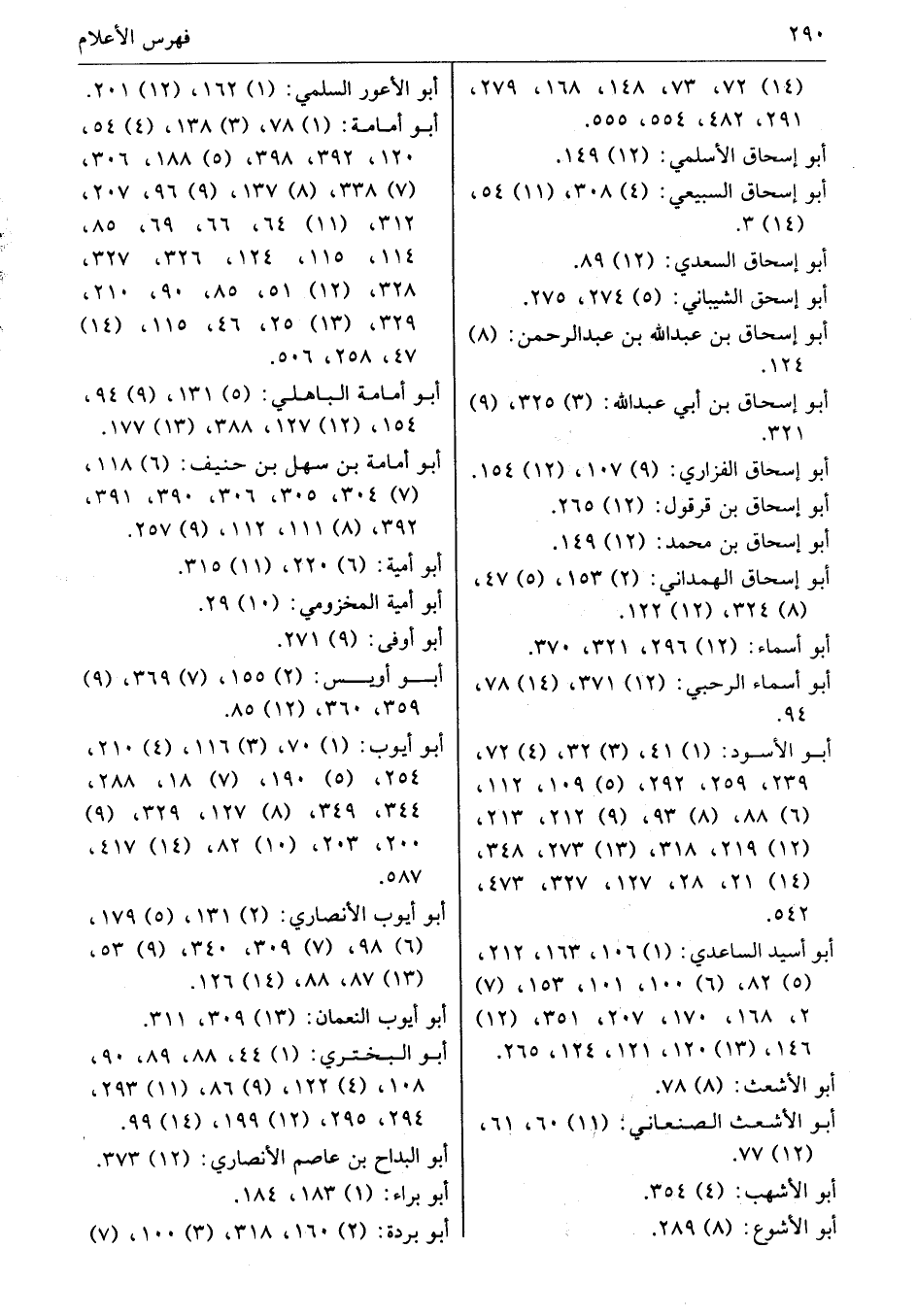 أبو أمامة: (1) 78، (3) 138، (4) 54، 120، 392، 398، (5) 188، 306، (7) 338، (8) 137، (9) 96، 207، 312، (11) 64، 66، 69، 85، 114، 115، 124، 326، 327، 328، (12) 51، 85، 90، 210، 329، (13) 25، 46، 115، (14) 47، 258، 506.