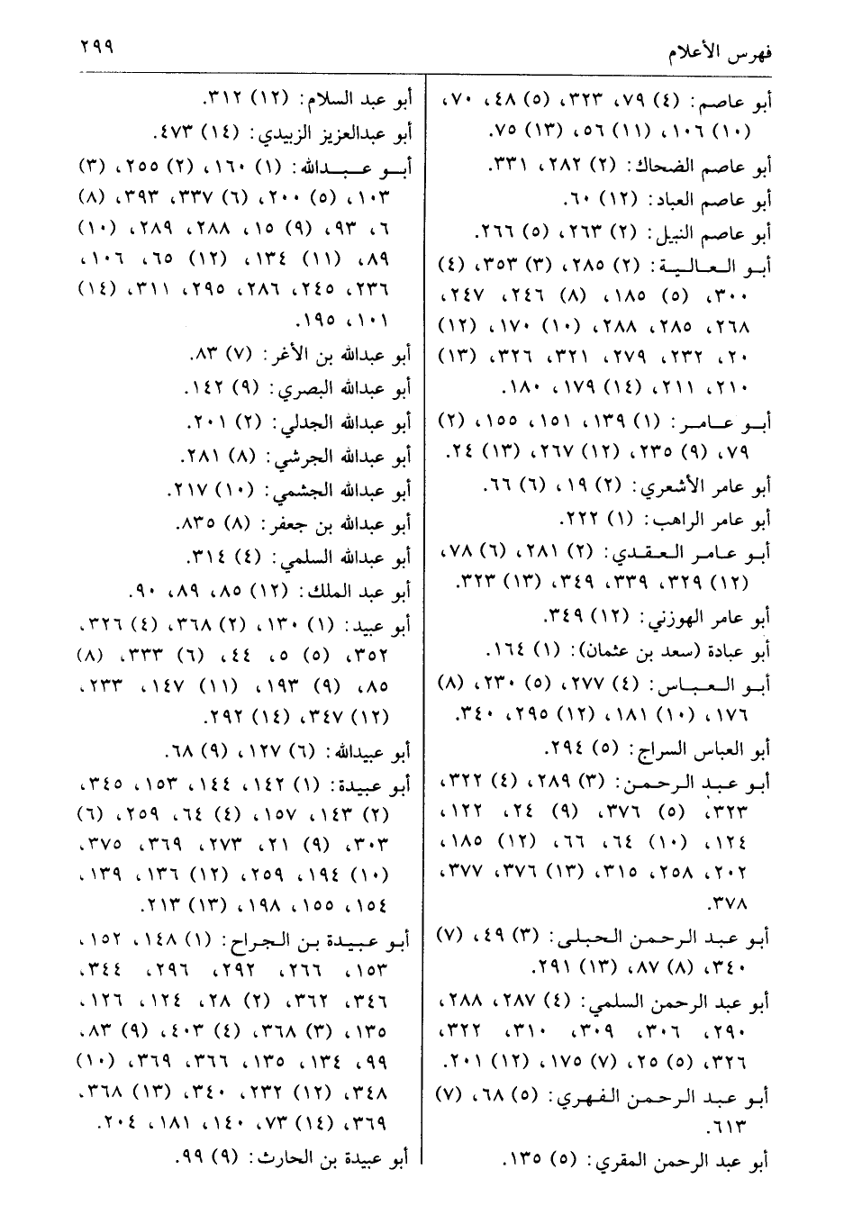 أبو عبد الرحمن: (3) 289، (4) 322، 323، (5) 376، (9) 24، 122، 124، (10) 64، 66، (12) 185، 202، 258، 315، (13) 376، 377، 378.
