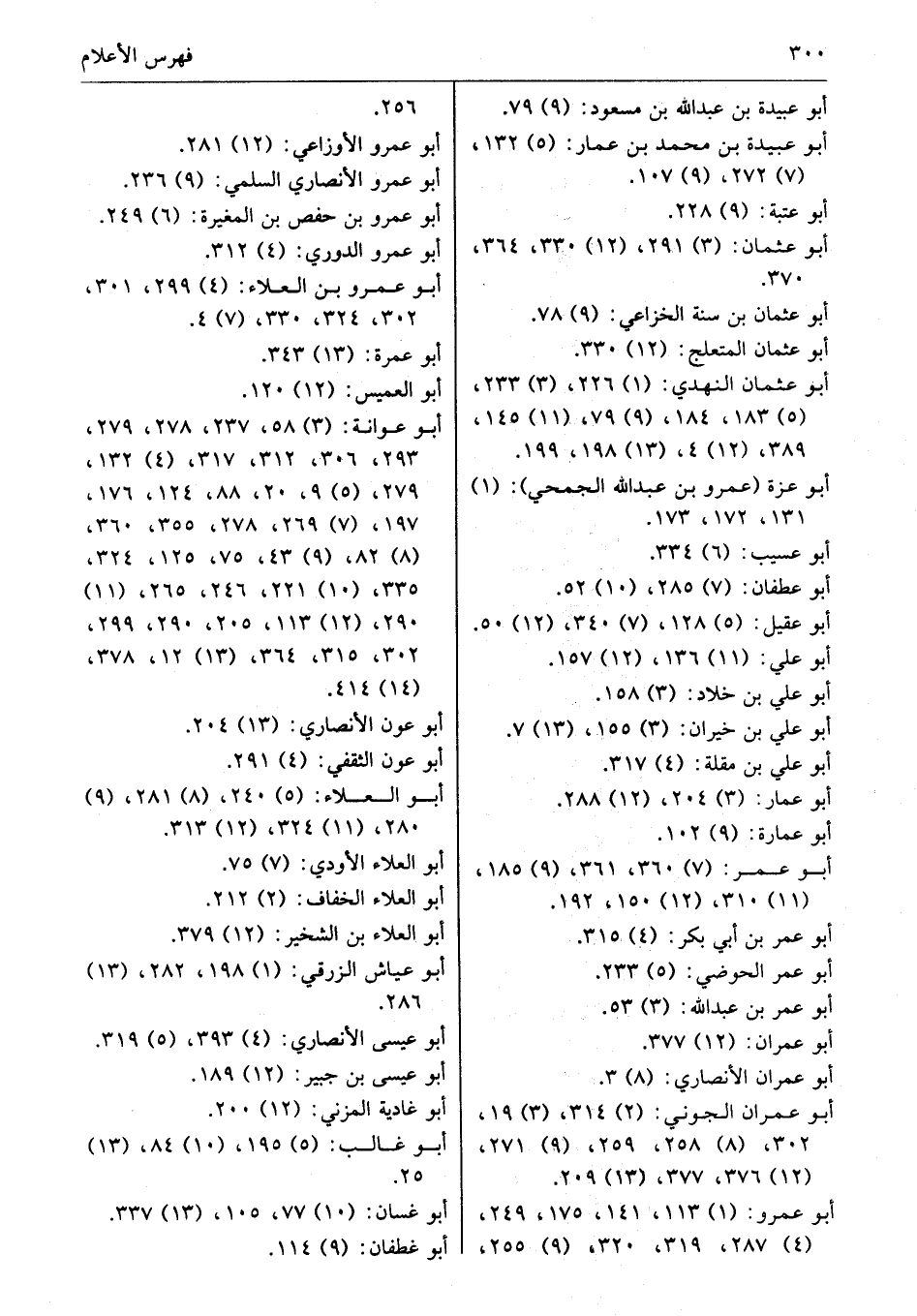 أبو عمرو: (1) 113، 141، 175، 249، (4) 287، 319، 320، (9) 255، 256.