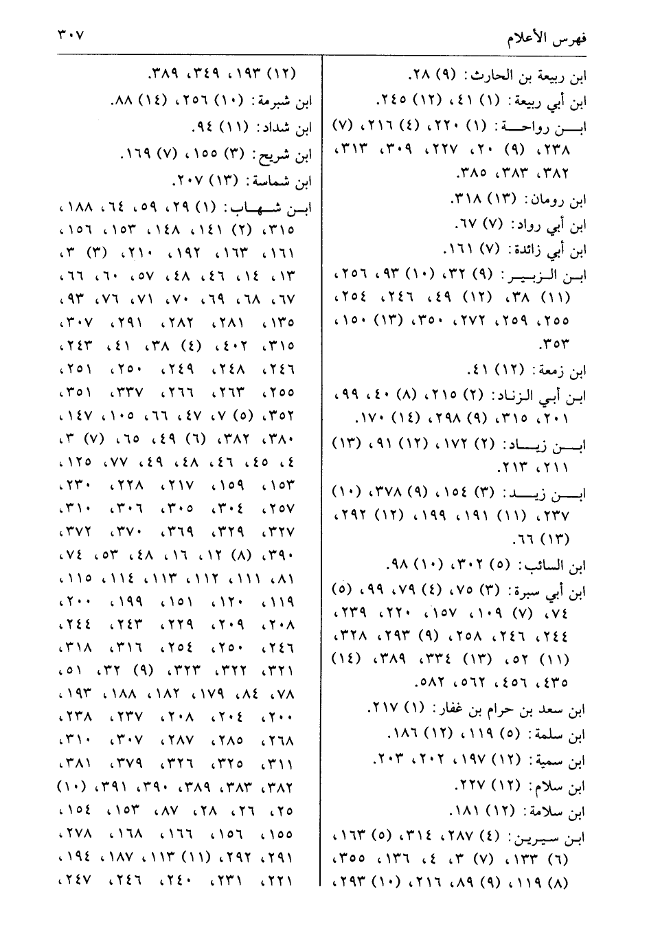 ابن شهاب: (1) 29، 59، 64، 188، 315، (2) 141، 148، 153، 156، 161، 163، 192، 210، (3) 3، 13، 14، 46، 48، 57، 60، 66، 67، 68، 69، 70، 71، 76، 93، 135، 281، 282، 291، 307، 315، 402، (4) 38، 41، 243، 246، 248، 249، 250، 251، 255، 263، 266، 337، 351، 352، (5) 7، 47، 66، 105، 147، 380، 382، (6) 49، 65، (7) 3، 4، 45، 46، 48، 49، 77، 125، 153، 159، 217، 228، 230، 257، 304، 305، 306، 310، 327، 329، 369، 370، 372، 390، (8) 12، 16، 48، 53، 74، 81، 111، 112، 113، 114، 115، 119، 120، 151، 199، 200، 208، 209، 229، 243، 244، 246، 250، 254، 316، 318، 321، 322، 323، (9) 32، 51، 78، 84، 179، 182، 188، 193، 200، 204، 208، 237، 238، 268، 285، 287، 307، 310، 311، 325، 326، 379، 381، 382، 383، 389، 390، 391، (10) 25، 26، 28، 87، 153، 154، 155، 156، 166، 168، 278، 291، 292، (11) 113، 187، 194، 221، 231، 240، 246، 247،