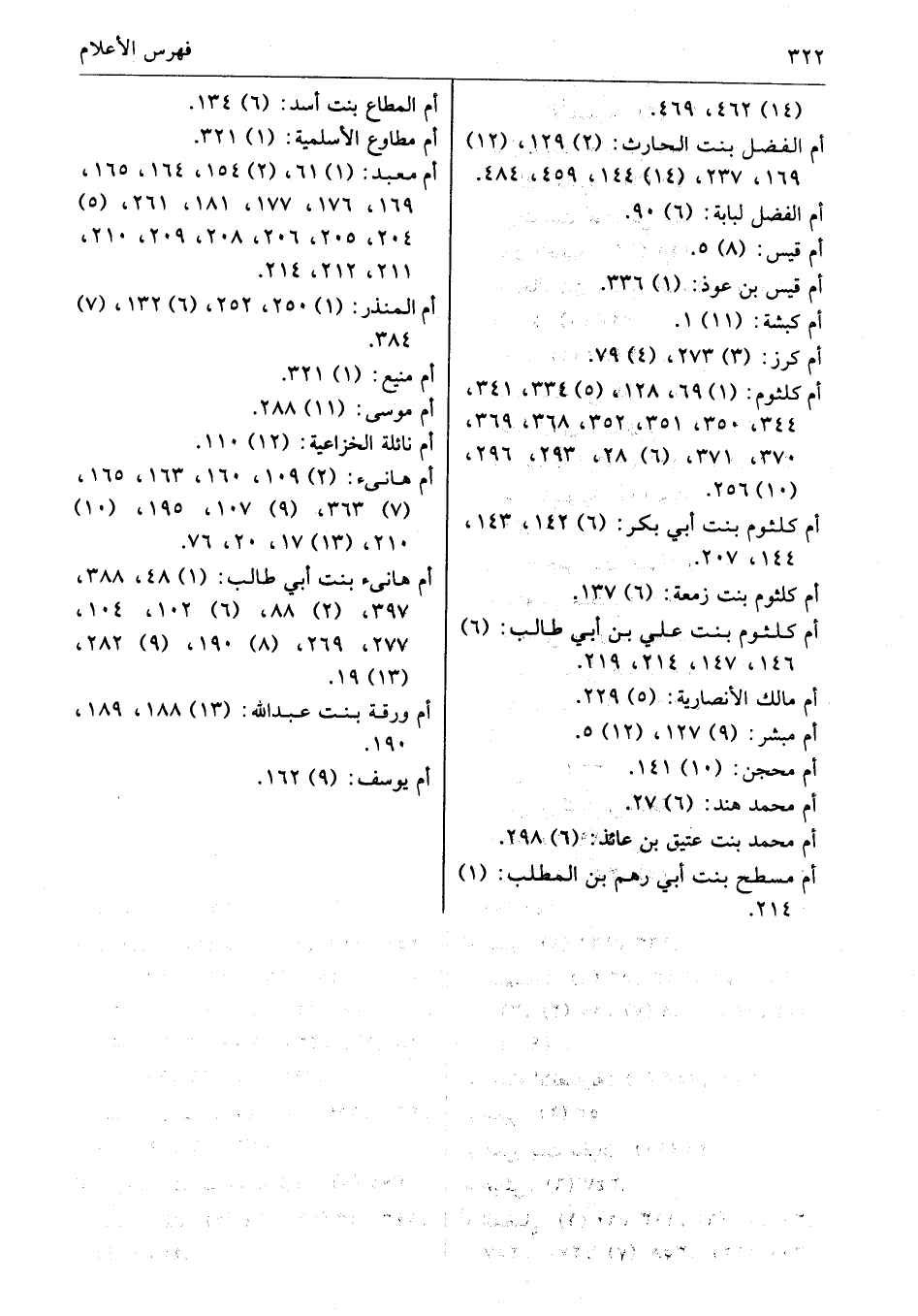 أم مسطح بنت أبي رهم بن المطلب: (1) 214. أم المطاع بنت أسد: (6) 134.