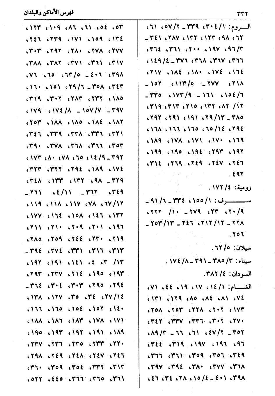 الروم: 1/ 304، 339- 2/ 57، 61، 62، 98، 123، 132، 287، 341- 3/ 96، 197، 200، 361، 364، 366، 367، 368، 376- 4/ 149، 164، 174، 180، 184، 217، 218، 277- 5/ 113، 152- 6/ 154، 161- 9/ 173، 335- 12/ 82، 132، 215، 313، 319، 385- 13/ 29، 191، 291، 292، 294، 14/ 65، 165، 166، 168، 169، 170، 171، 178، 189، 192، 293، 194، 195، 199، 246، 247، 249، 269، 314، 492.