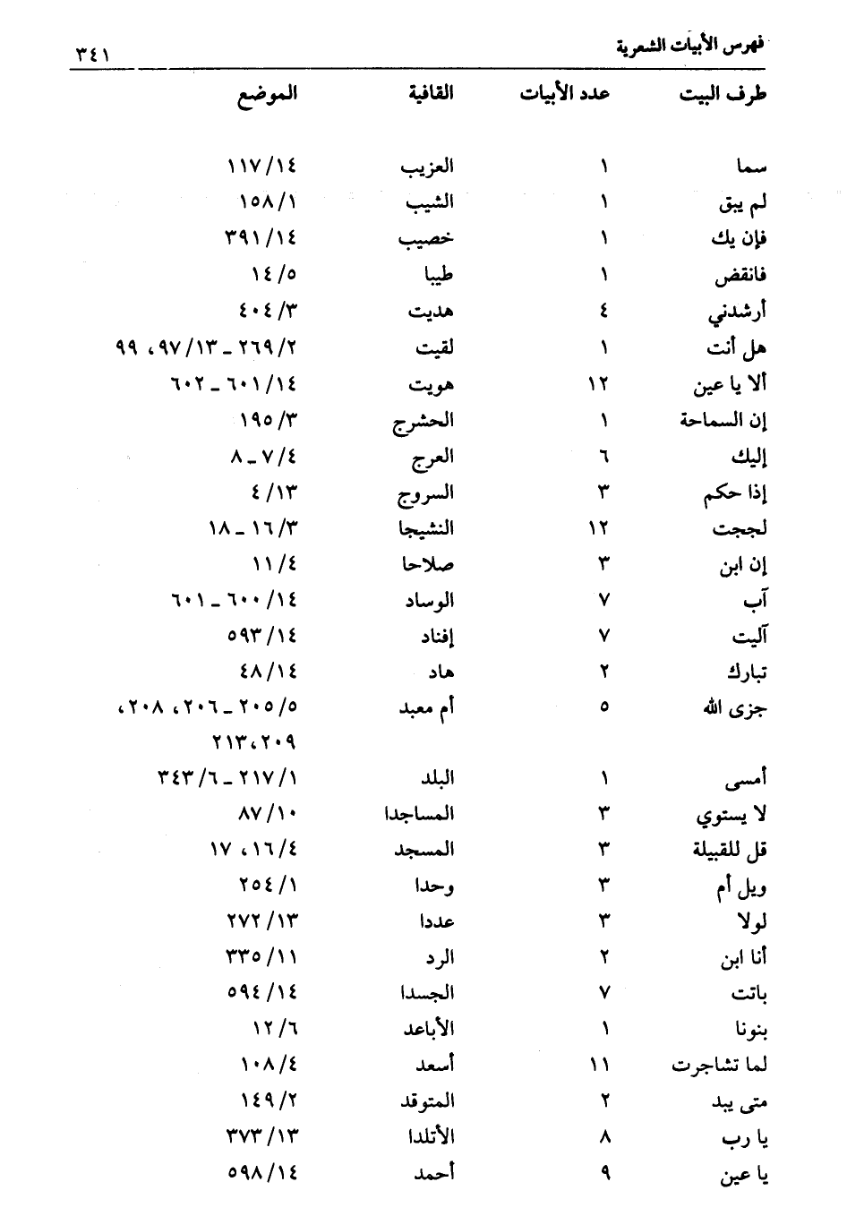ألا يا عين/ 12/ هويت/ 14/ 601- 602.