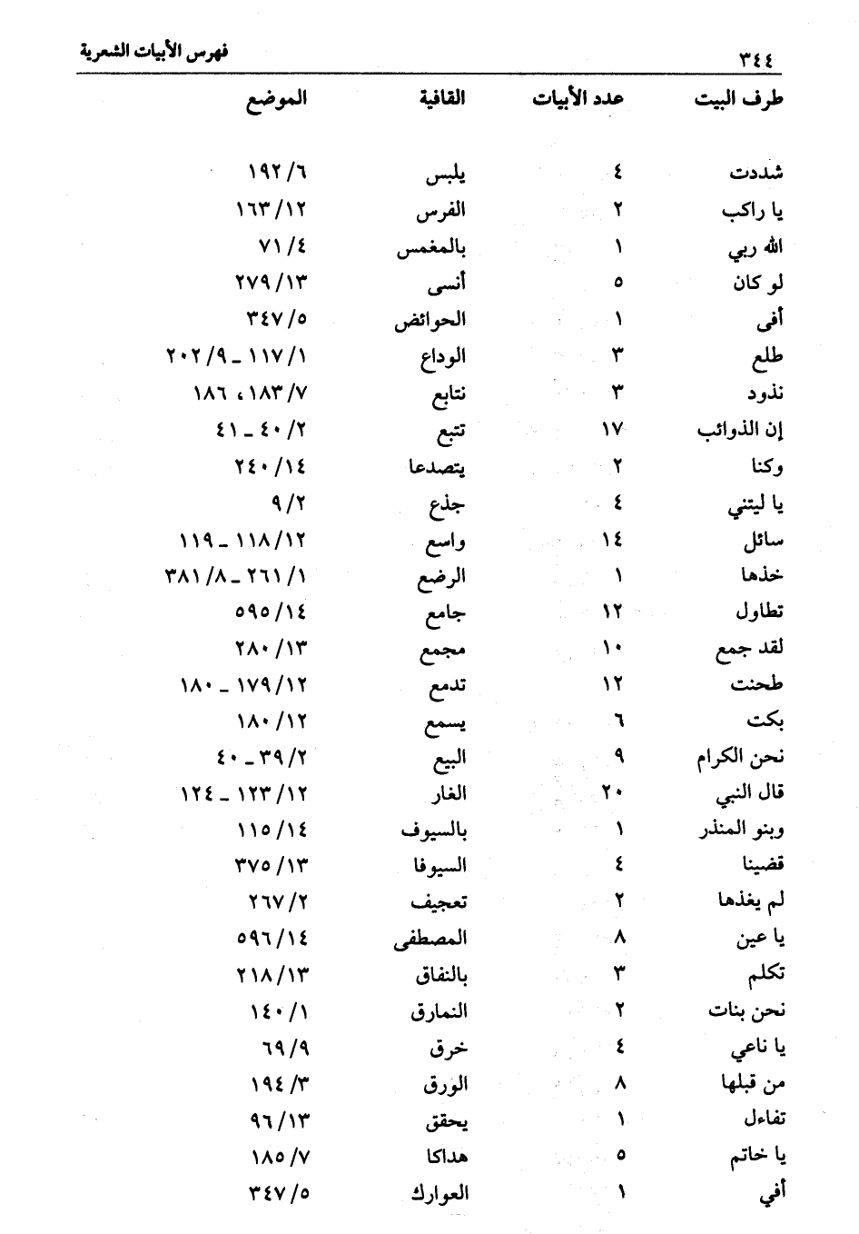 طرف البيت/ عدد الأبيات/ القافية/ الموضع شددت/ 4/ يلبس/ 6/ 192.