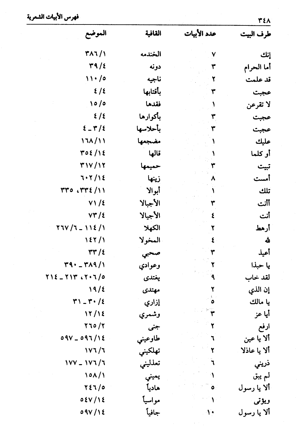 طرف البيت/ عدد الأبيات/ القافية/ الموضع إنك/ 7/ الخندمة/ 1/ 386.