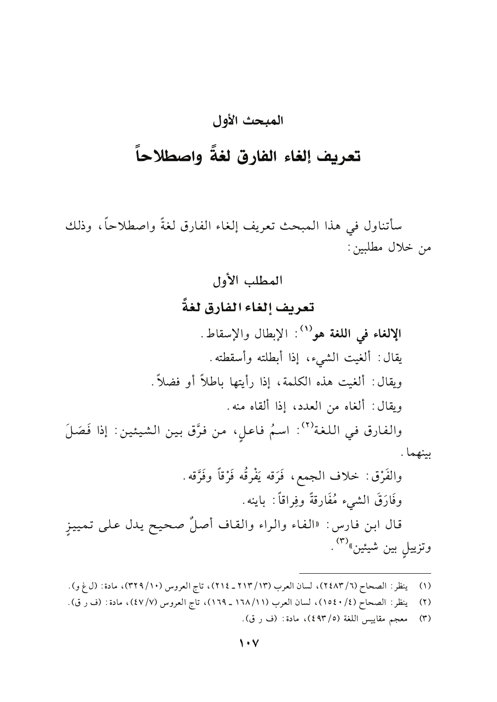المطلب الأول: تعريف إلغاء الفارق لغةً.