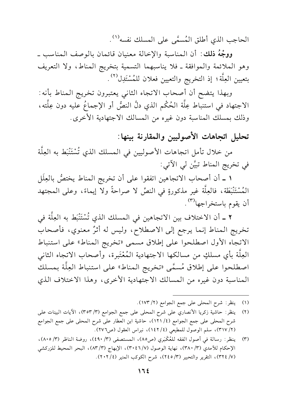 من خلال تأمل اتجاهات الأصوليين في المسلك الذي تُسْتَنْبَط به العِلَّة في تخريج المناط تبيَّن لي الآتي:
