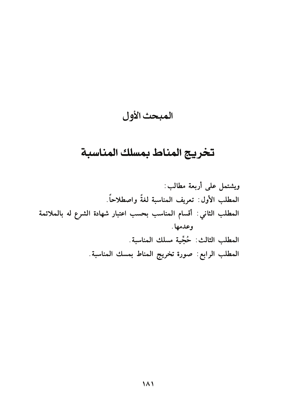 ويشتمل على أربعة مطالب