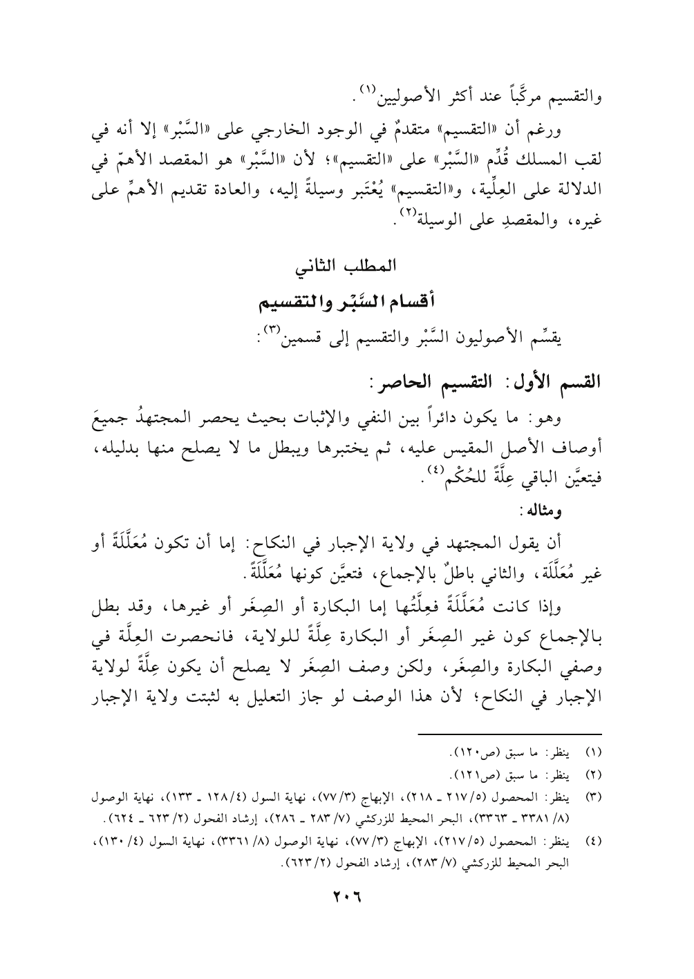 والتقسيم مركَّباً عند أكثر الأصوليين (١).