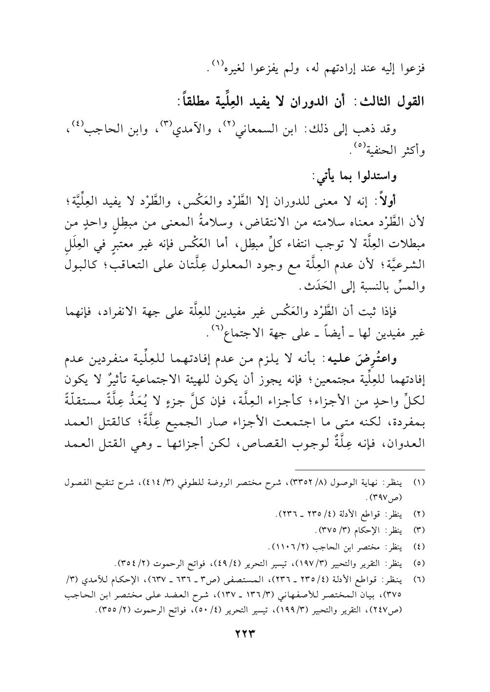 (١) ينظر: نهاية الوصول (٨/ ٣٣٥٢)، شرح مختصر الروضة للطوفي (٣/ ٤١٤)، شرح تنقيح الفصول ... (٣٩٧).