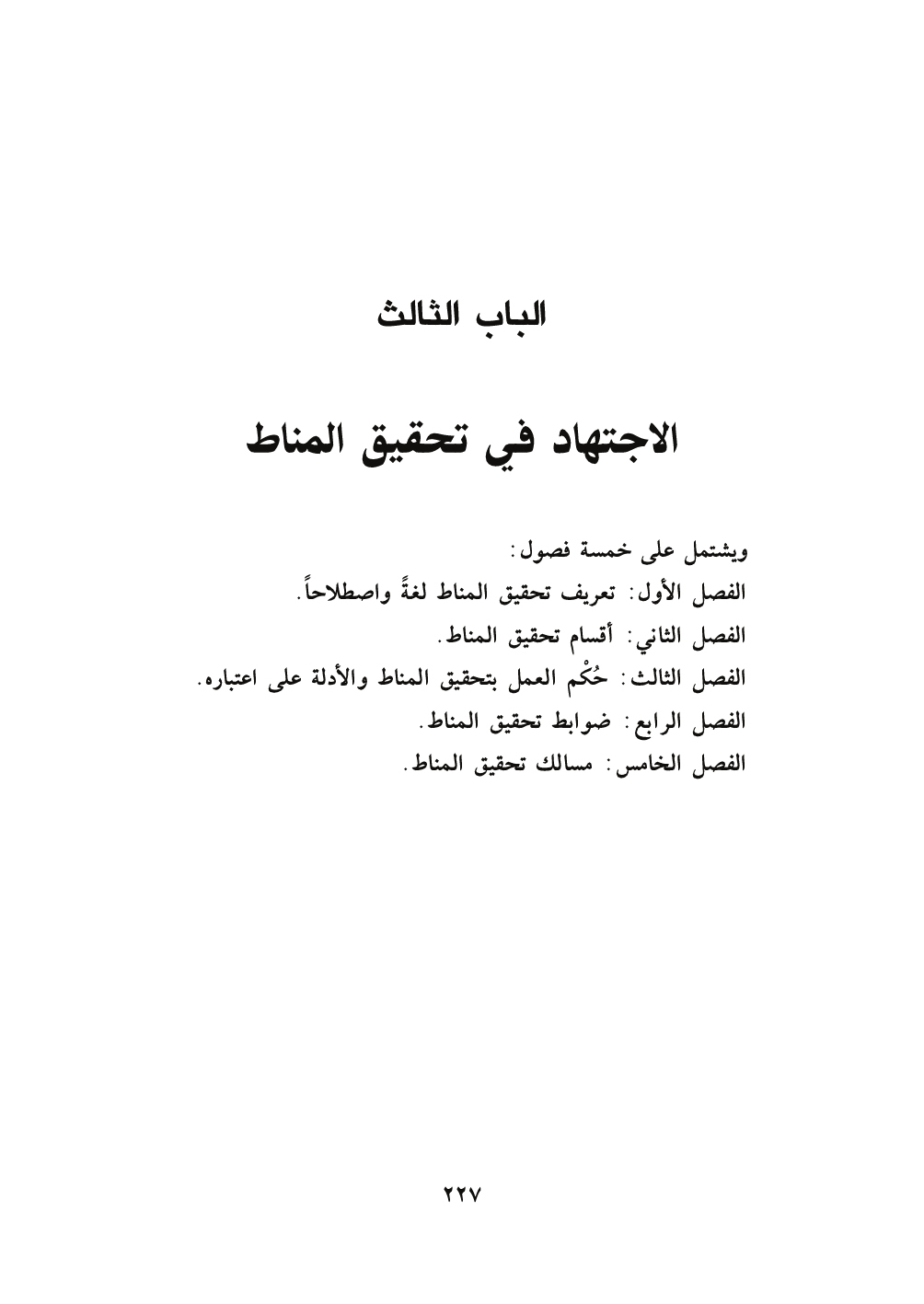 الفصل الثالث: حُكْم العمل بتحقيق المناط والأدلة على اعتباره.