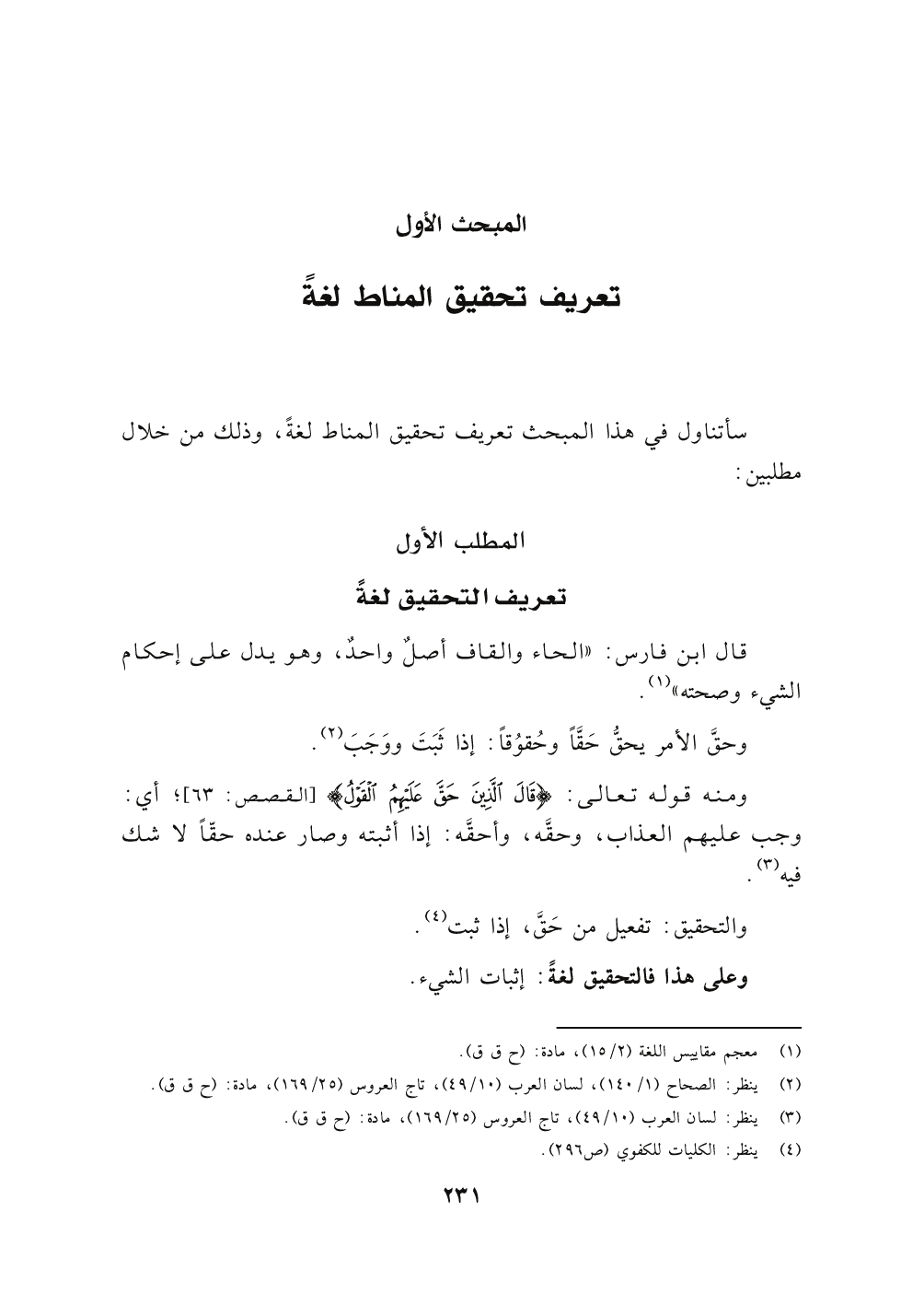 المطلب الأول: تعريف التحقيق لغةً.