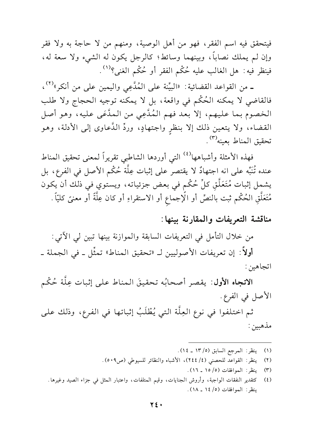 أولاً: إن تعريفات الأصوليين لـ " تحقيق المناط " تمثِّل - في الجملة - اتجاهين: