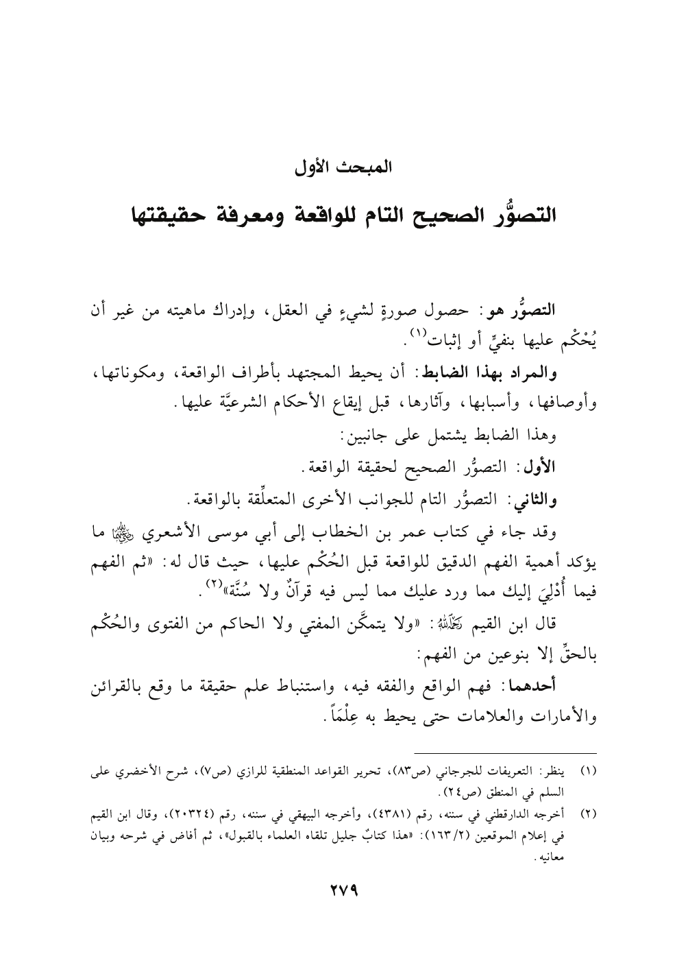 المبحث الأول: التصوُّر الصحيح التام للواقعة ومعرفة حقيقتها.
