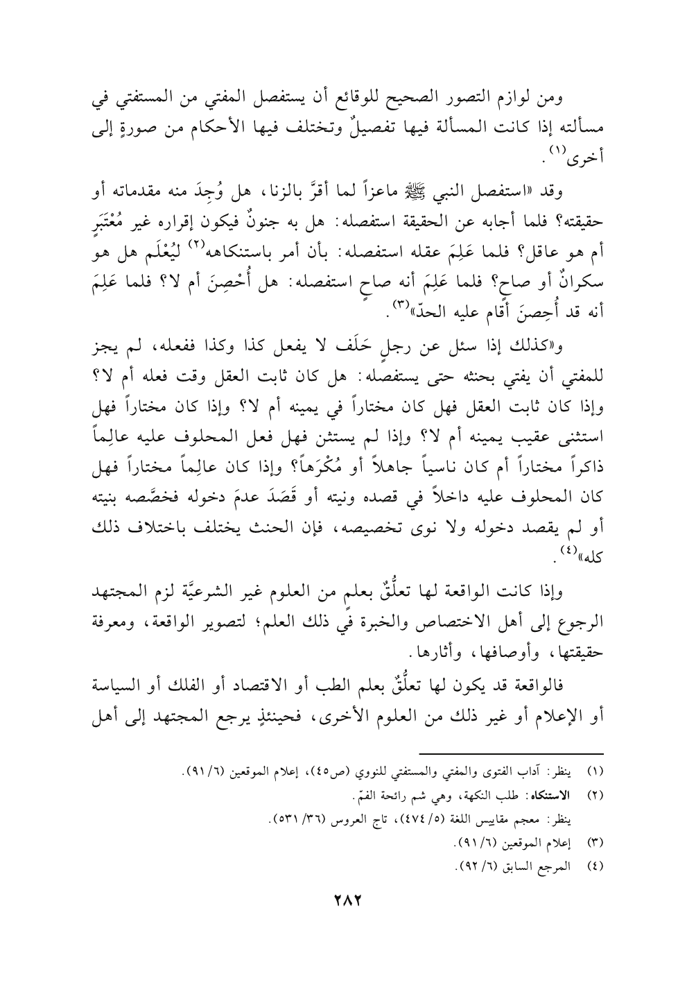 وإذا كانت الواقعة لها تعلُّقٌ بعلمٍ من العلوم غير الشرعيَّة لزم المجتهد الرجوع إلى أهل الاختصاص والخبرة في ذلك العلم؛ لتصوير الواقعة، ومعرفة حقيقتها، وأوصافها، وأثارها.