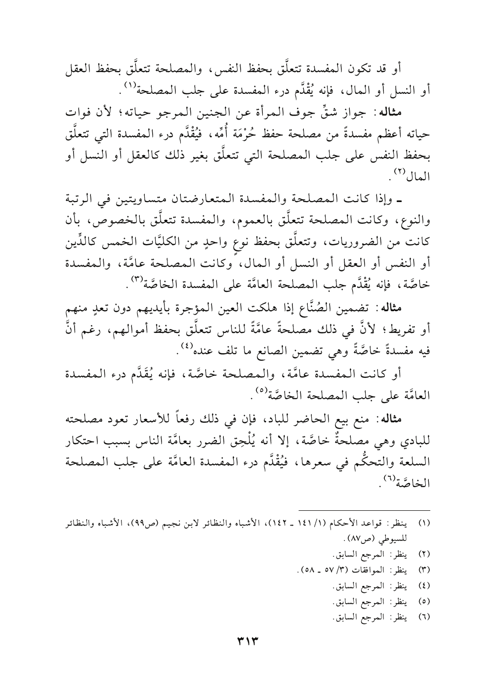 أو قد تكون المفسدة تتعلَّق بحفظ النفس، والمصلحة تتعلَّق بحفظ العقل أو النسل أو المال، فإنه يُقْدَّم درء المفسدة على جلب المصلحة (١).
