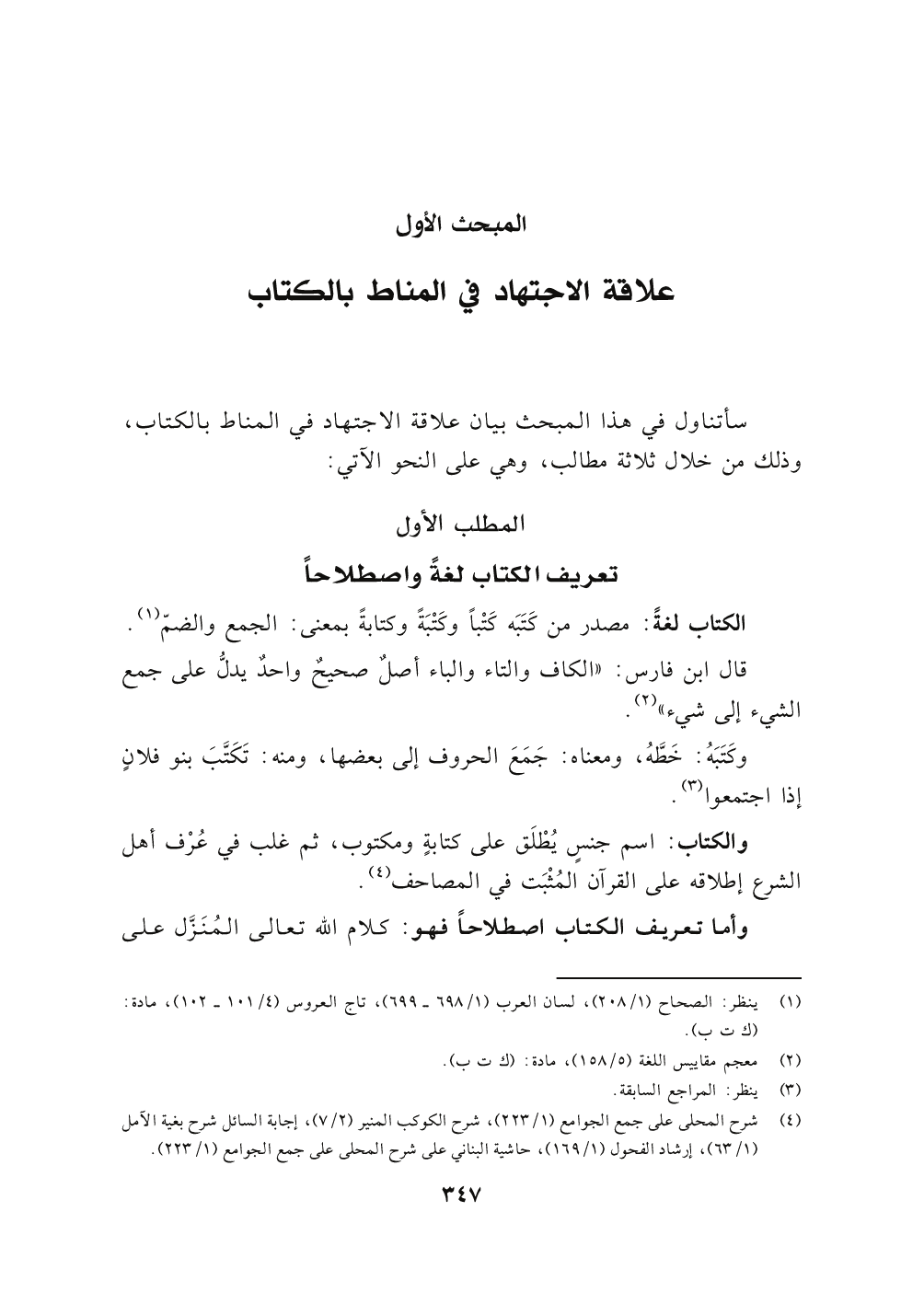 المطلب الأول: تعريف الكتاب لغةً واصطلاحاً.
