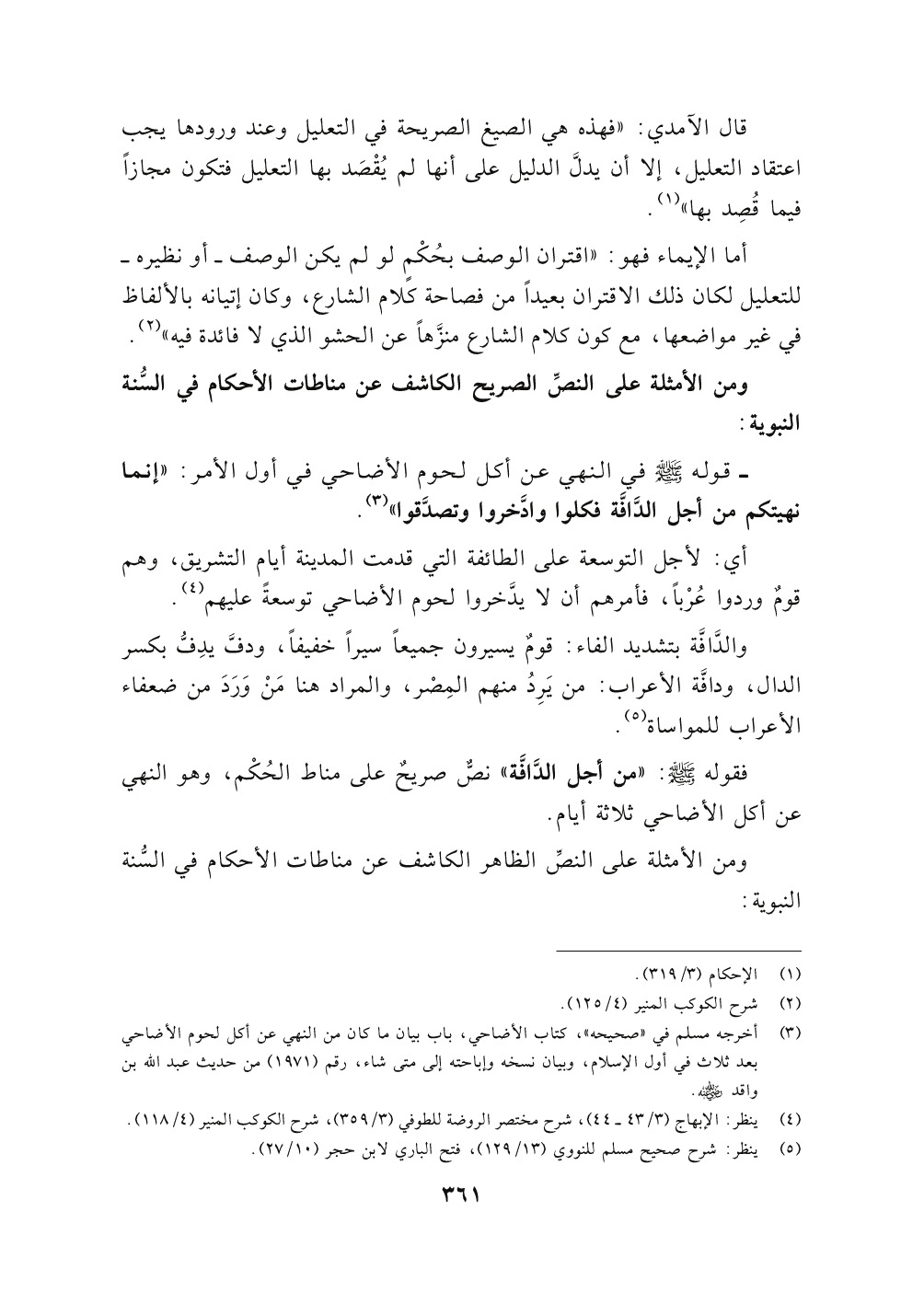 فقوله صلى الله عليه وسلم: " من أجل الدَّافَّة" نصٌ صريحٌ على مناط الحُكْم, وهو النهي عن أكل الأضاحي ثلاثة أيام.