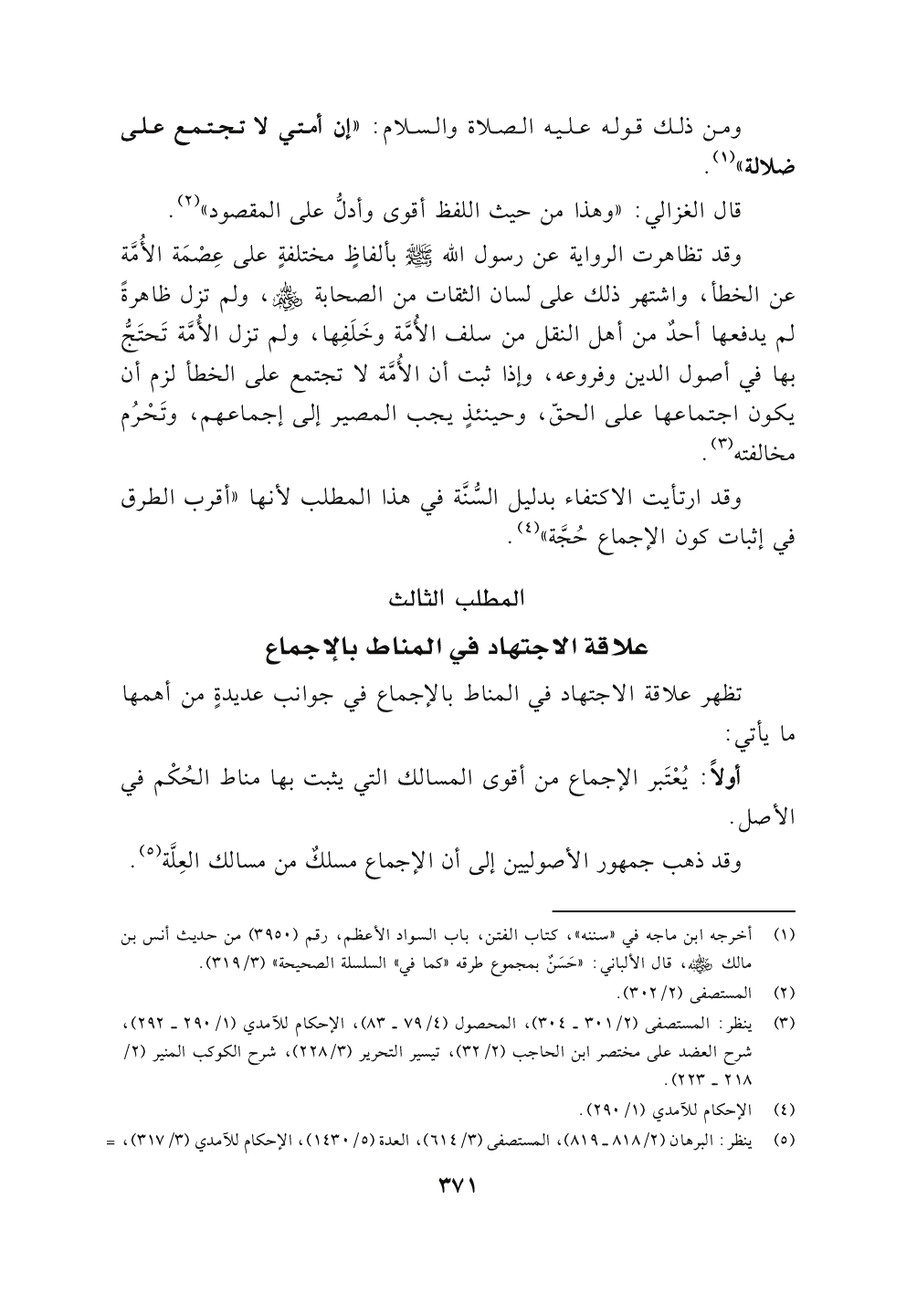 ومن ذلك قوله عليه الصلاة والسلام: " إن أمتي لاتجتمع على ضلالة" (١).