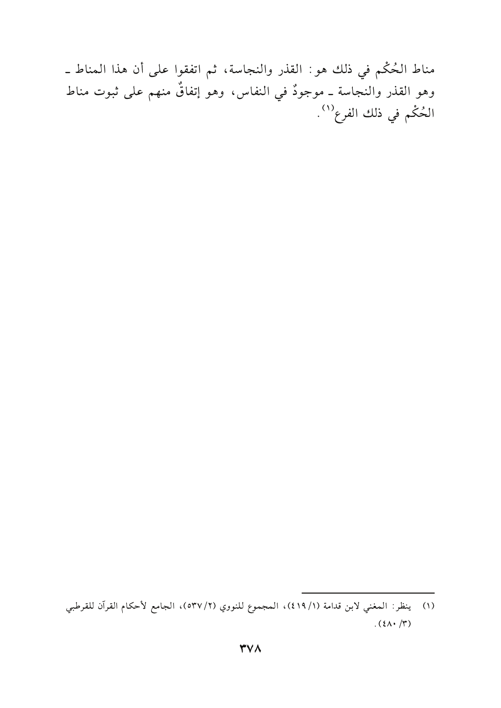 (١) ينظر: المغني لابن قدامة (١/ ٤١٩)، المجموع للنووي (٢/ ٥٣٧)، الجامع لأحكام القرآن للقرطبي (٣/ ٤٨٠).