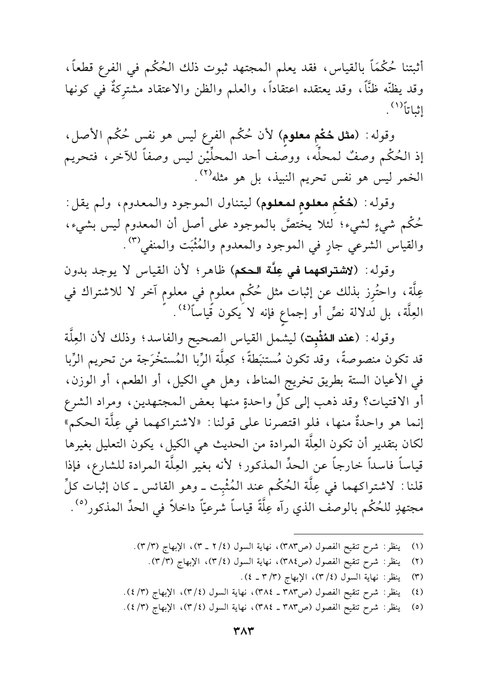 (٥) ينظر: شرح تنقيح الفصول (٣٨٣ - ٣٨٤) , نهاية السول (٤/ ٣) , الإبهاج (٣/ ٤).