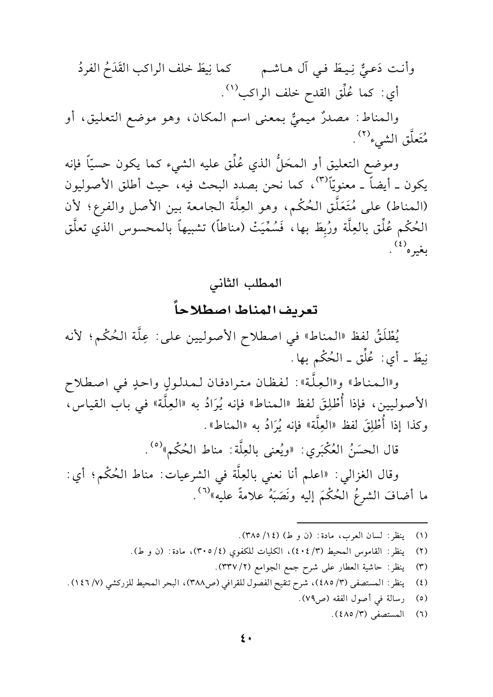 المطلب الثاني: تعريف المناط اصطلاحاً.