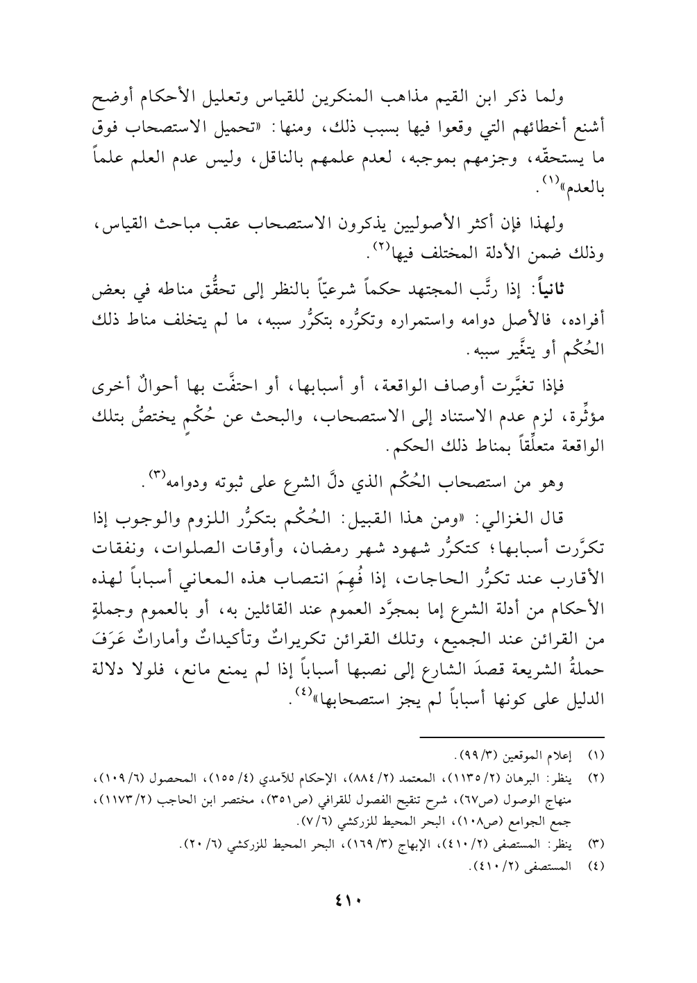 (٣) ينظر: المستصفى (٢/ ٤١٠) , الإبهاج (٣/ ١٦٩) , البحر المحيط للزركشي (٦/ ٢٠).