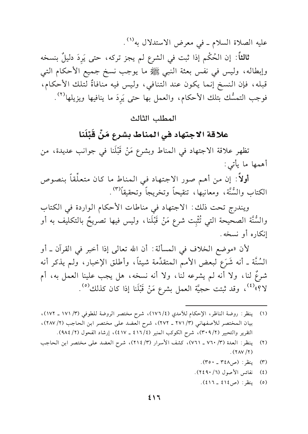 المطلب الثالث: علاقة الاجتهاد في المناط بشرع مَنْ قَبْلَنا.