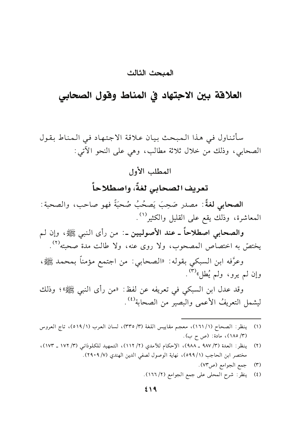المطلب الأول: تعريف الصحابي لغةً، واصطلاحاً.
