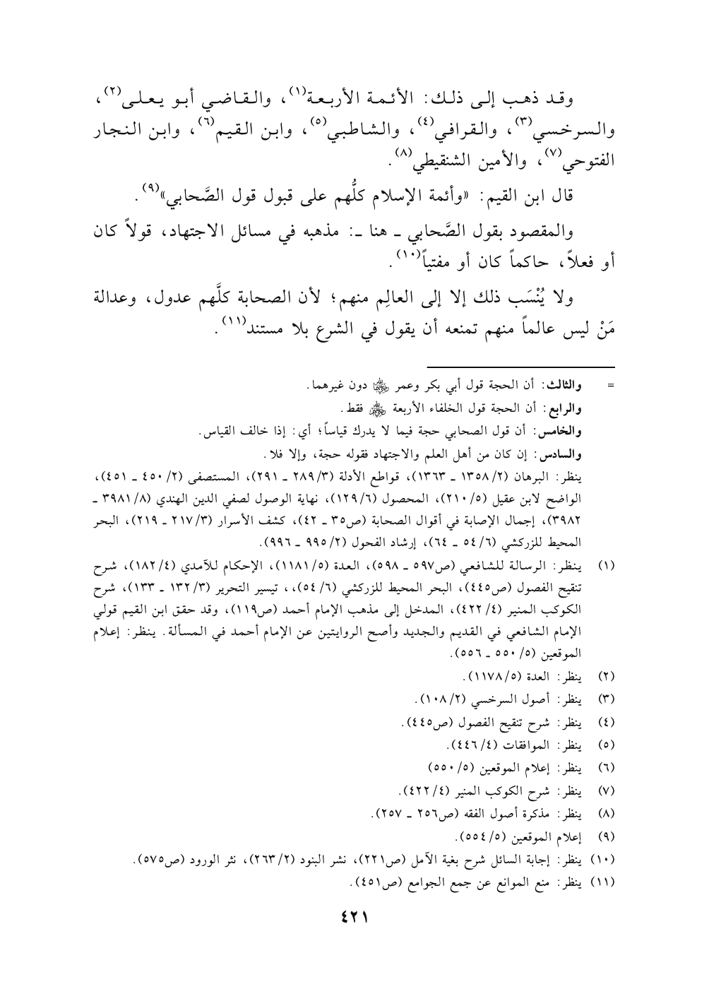 قال ابن القيم: " وأئمة الإسلام كلُّهم على قبول قول الصَّحابي" (٩).