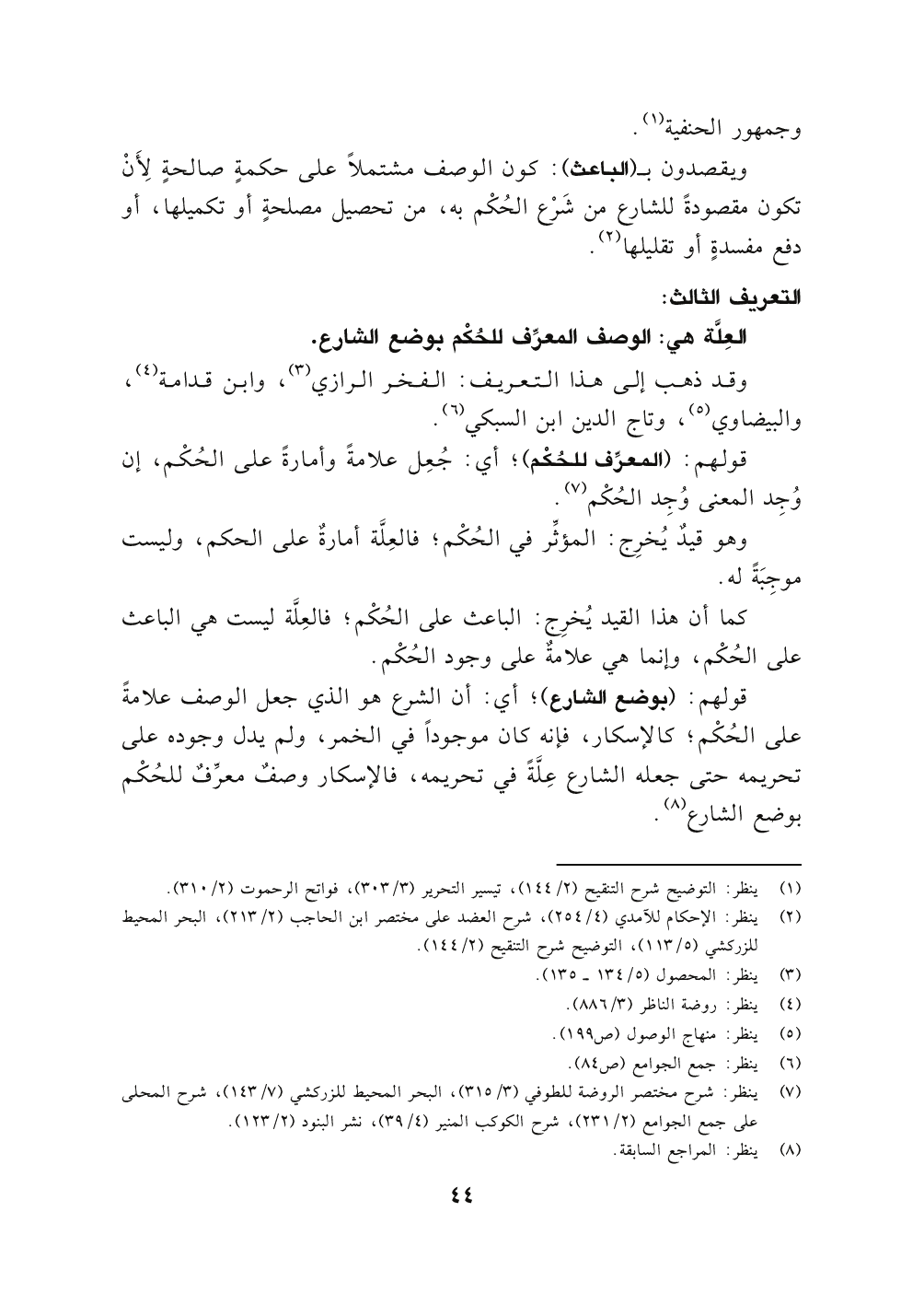 وقد ذهب إلى هذا التعريف: الفخر الرازي (٣)، وابن قدامة (٤)، والبيضاوي (٥)، وتاج الدين ابن السبكي (٦).