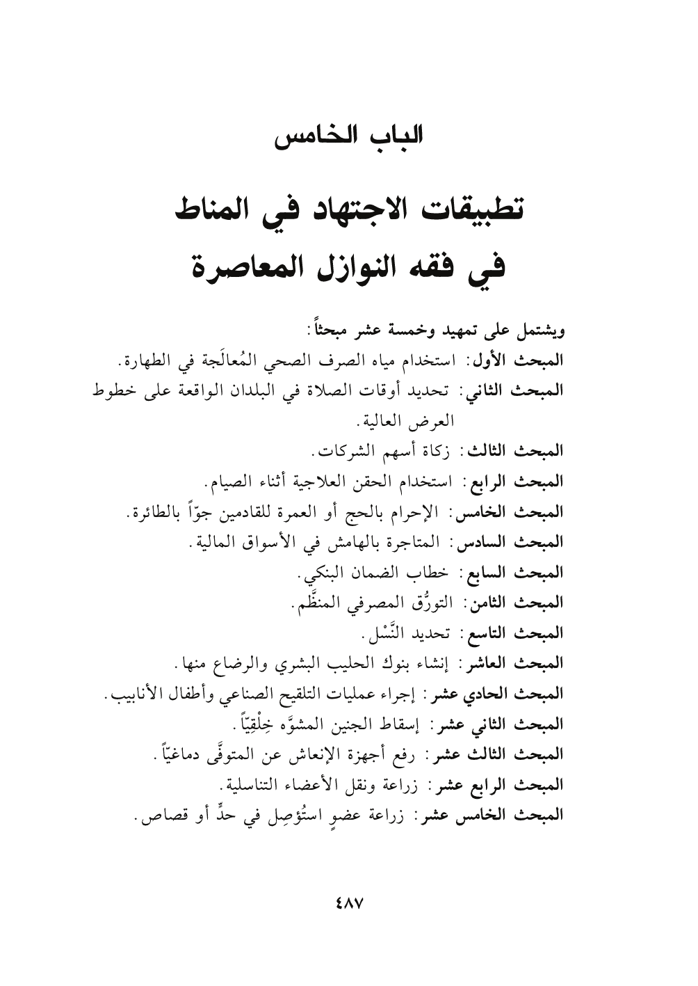 ويشتمل على تمهيد وخمسة عشر مبحثا: