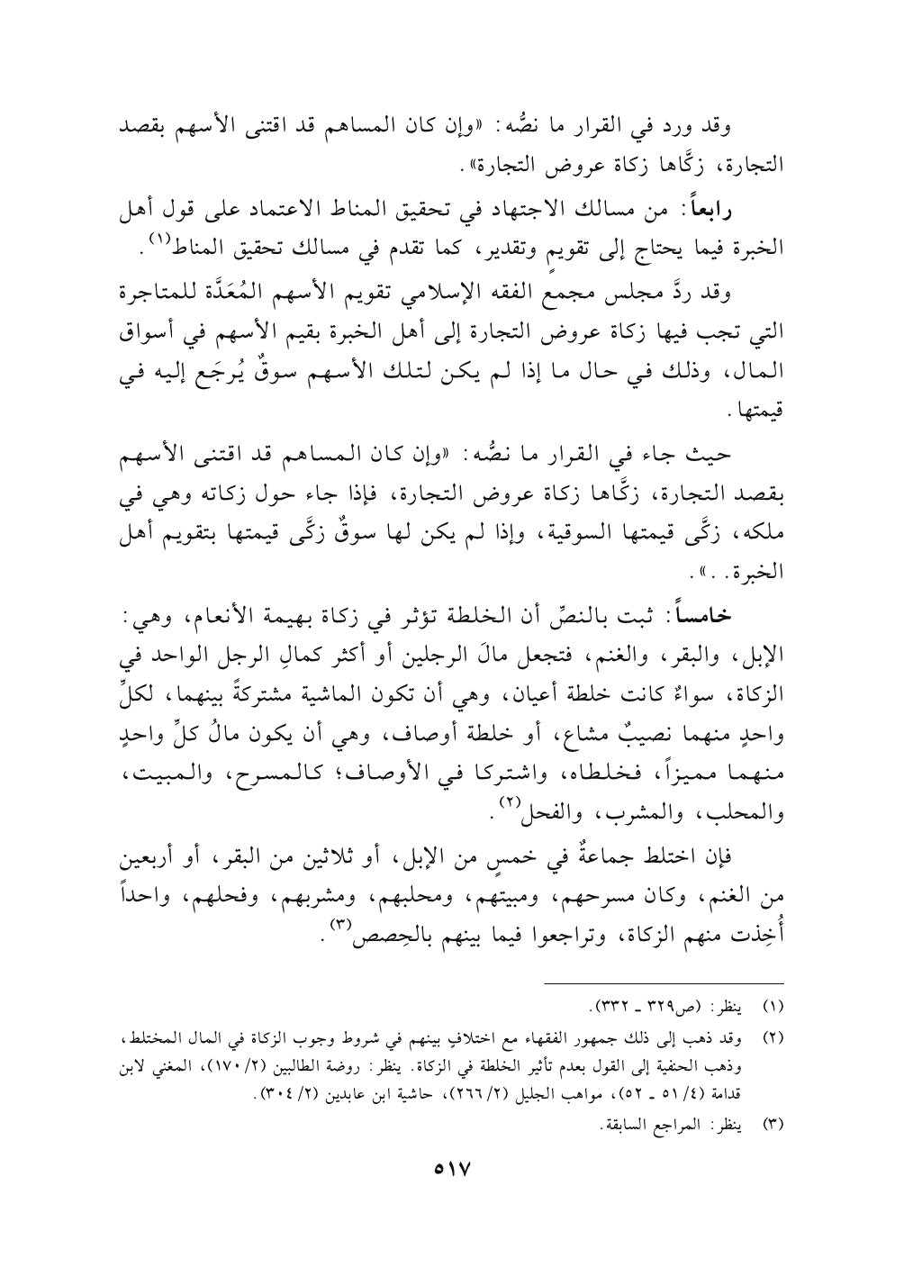 (٢) وقد ذهب إلى ذلك جمهور الفقهاء مع اختلافٍ بينهم في شروط وجوب الزكاة في المال المختلط ,وذهب الحنفية إلى القول بعدم تأثير الخلطة في الزكاة. ينظر: روضة الطالبين (٢/ ١٧٠) , المغني لابن قدامة (٤/ ٥١ - ٥٢) , مواهب الجليل (٢/ ٢٦٦) , حاشية ابن عابدين (٢/ ٣٠٤).