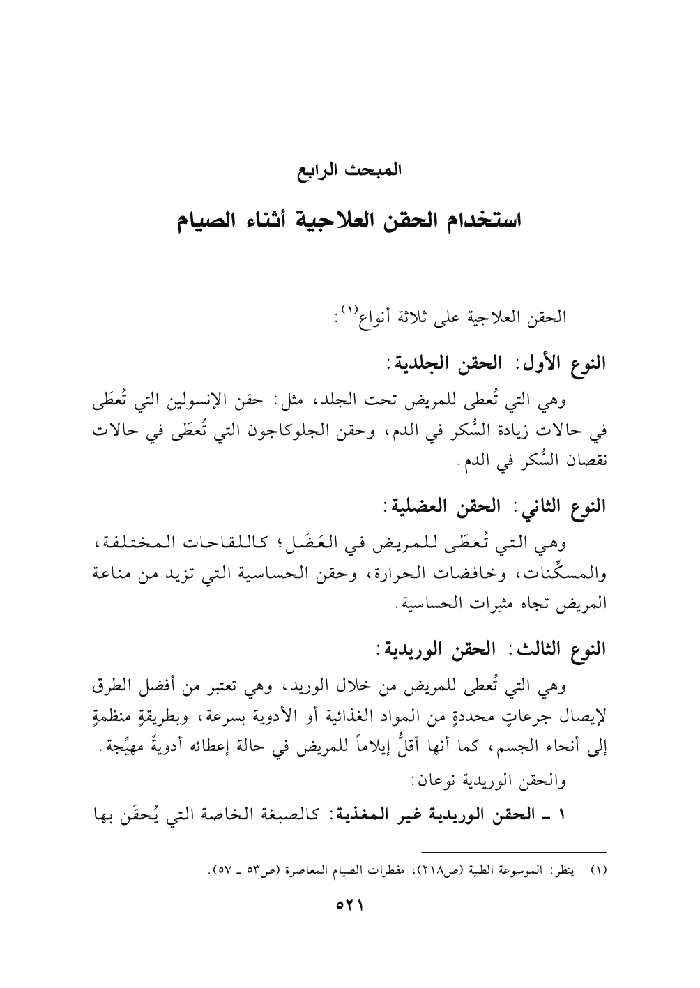 (١) ينظر: الموسوعة الطبية (٢١٨)، مفطرات الصيام المعاصرة (٥٣ - ٥٧).