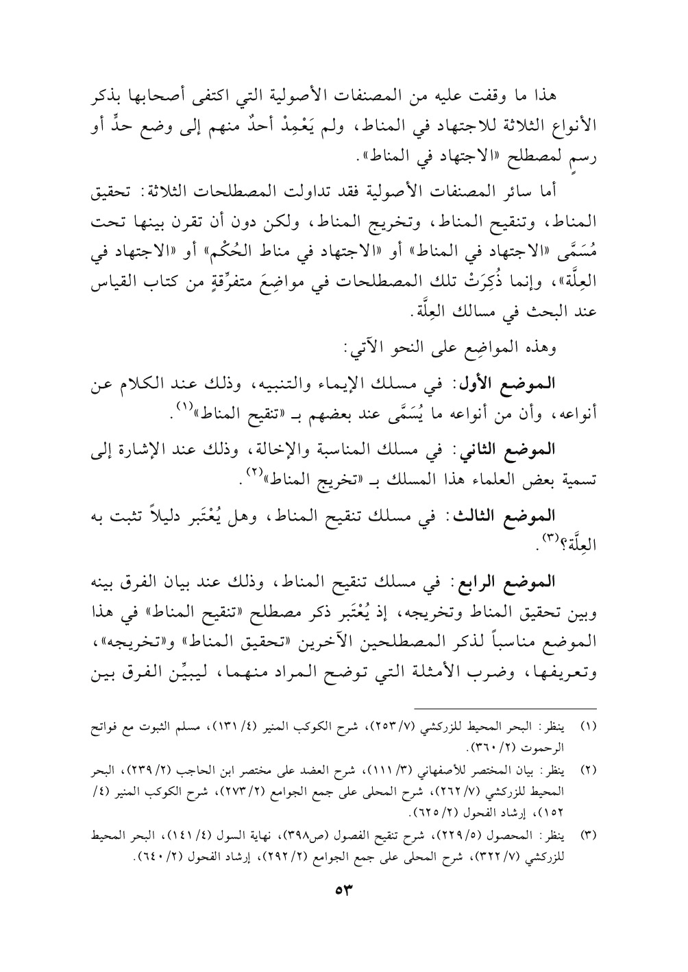 أما سائر المصنفات الأصولية فقد تداولت المصطلحات الثلاثة: تحقيق المناط، وتنقيح المناط، وتخريج المناط، ولكن دون أن تقرن بينها تحت مُسَمَّى "الاجتهاد في المناط" أو "الاجتهاد في مناط الحُكْم" أو "الاجتهاد في العِلَّة"، وإنما ذُكِرَتْ تلك المصطلحات في مواضِعَ متفرِّقةٍ من كتاب القياس عند البحث في مسالك العِلَّة.
