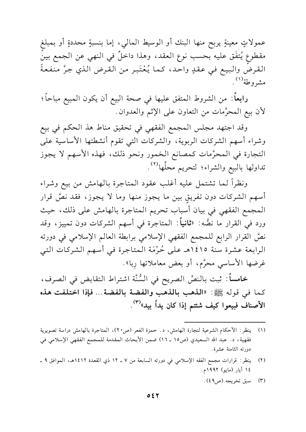 (١) ينظر: الأحكام الشرعية لتجارة الهامش ,د. حمزة الفعر (٢٠) , المتاجرة بالهامش دراسة تصويرية فقهية, د. عبدالله السعيدي (١٥ - ١٦) ضمن الأبحاث المقدمة للمجمع الفقهي الإسلامي في دورته الثامنة عشرة.