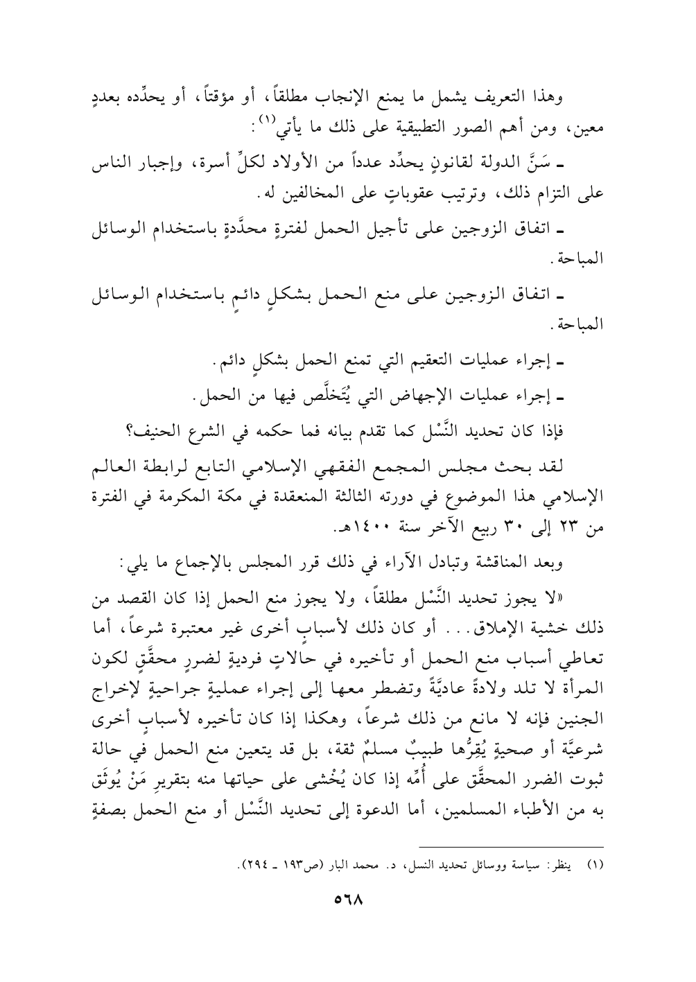 (١) ينظر: سياسة ووسائل تحديد النسل , د. محمد البار (١٩٣ - ٢٩٤).