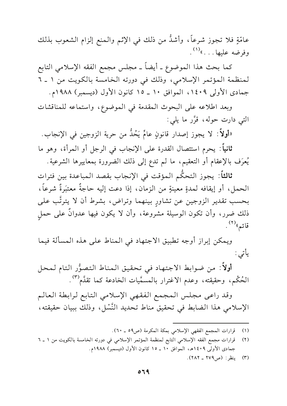 (٢) قرارات مجمع الفقه الإسلامي التابع لمنظمة المؤتمر الإسلامي في دورته الخامسة بالكويت من ١ - ٦ جمادى الأولى ١٤٠٩ الموافق ١٠ - ١٥ كانون الأول (ديسمبر) ١٩٨٨ م.