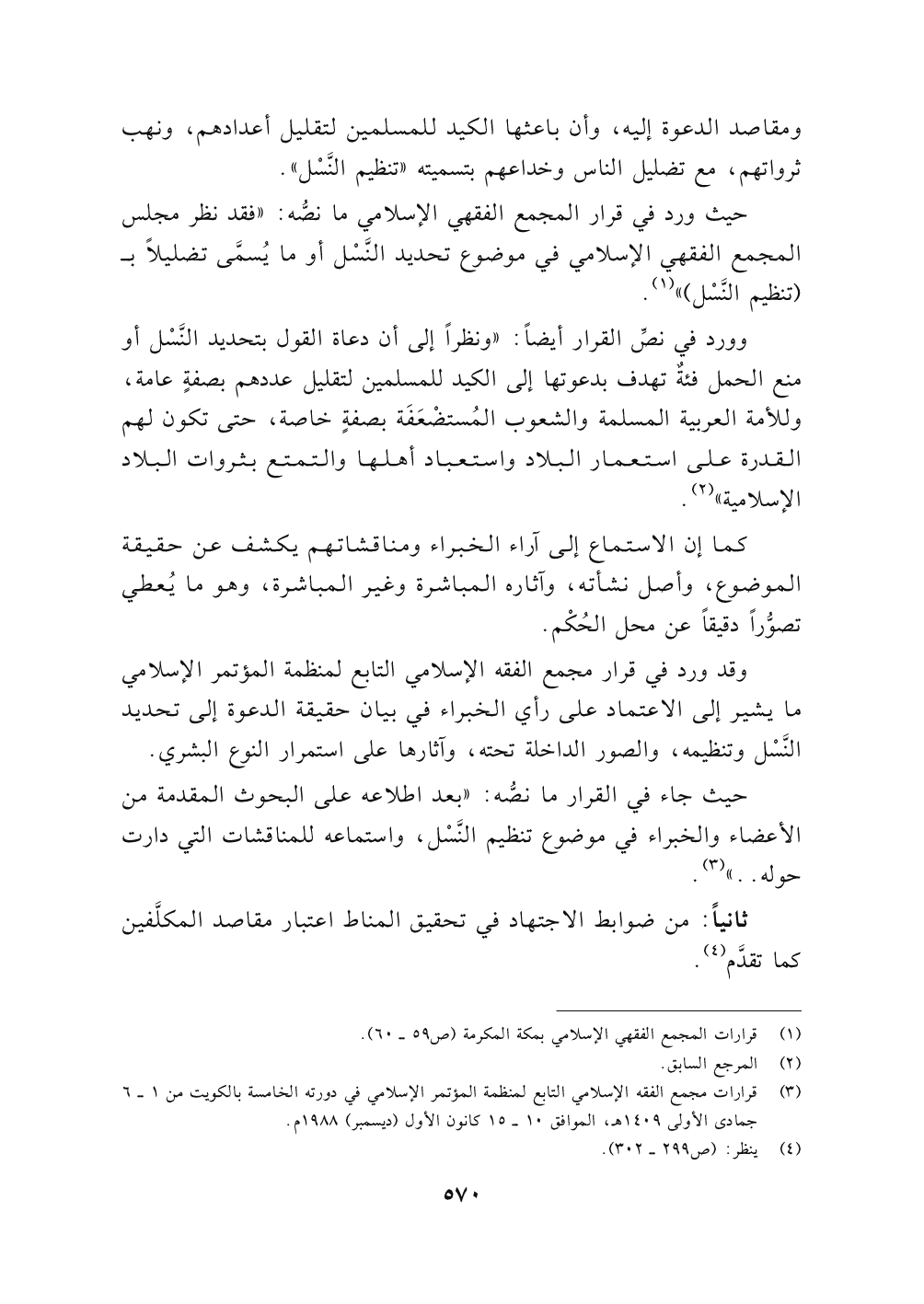 حيث جاء في القرار مانصُّه: " بعد اطلاعه على البحوث المقدمة من الأعضاء والخبراء في موضوع تنظيم النَّسْل، واستماعه للمناقشات التي دارت حوله .. " (٣).