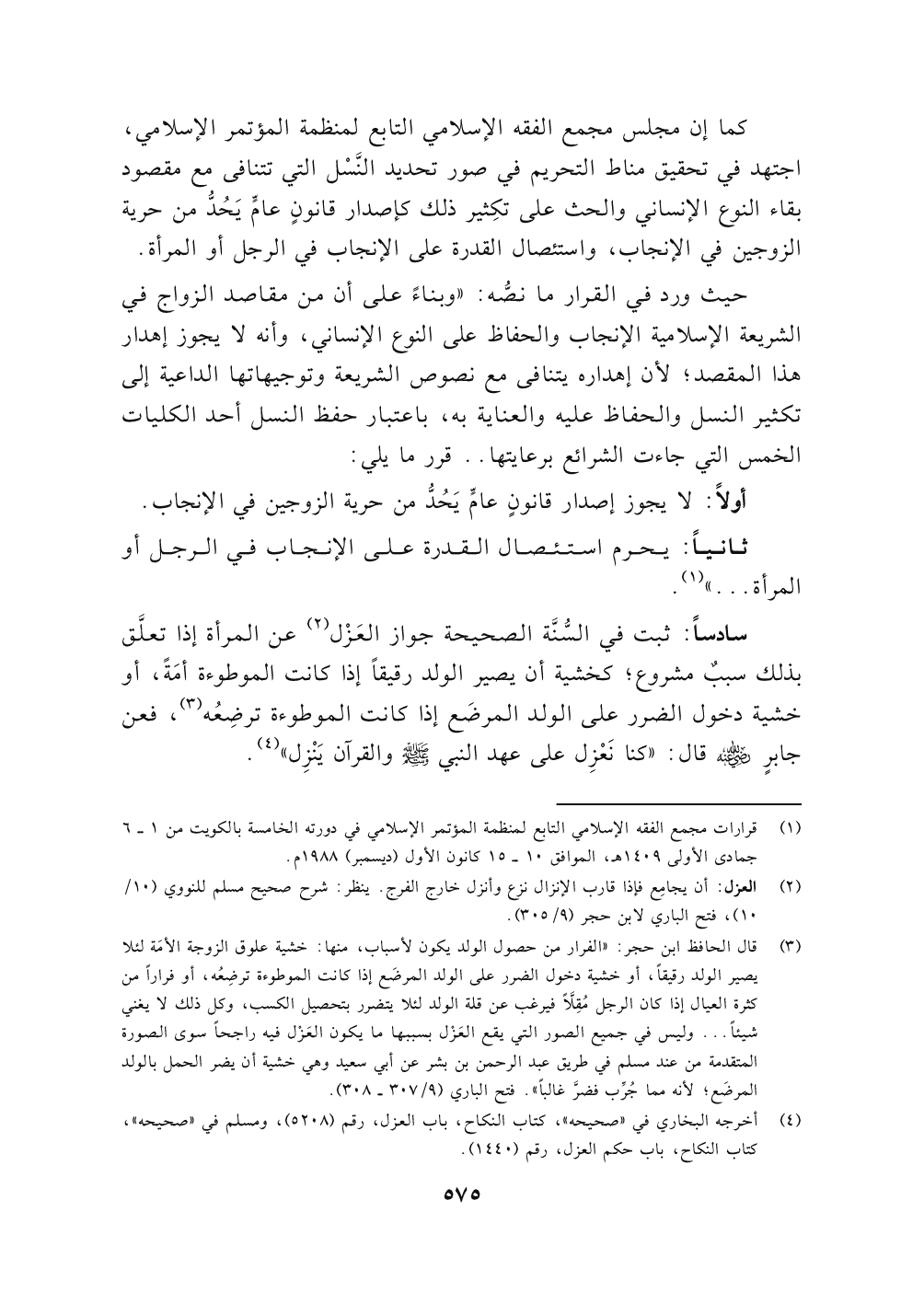أولاً: لا يجوز إصدار قانونٍ عامًّ يَحُدُّ من حرية الزوجين في الإنجاب.