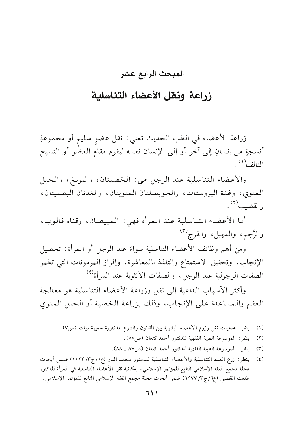(٤) ينظر: زرع الغدد التناسلية والأعضاء التناسلية للدكتور محمد البار (ع ٦ /ج ٣/ ٢٠٢٣) ضمن أبحاث مجلة مجمع الفقه الإسلامي التابع للمؤتمر الإسلامي, إمكانية نقل الأعضاء التناسلية في المرأة للدكتور طلعت القصبي (ع ٦/ج ٣/ ١٩٧٧) ضمن أبحاث مجلة مجمع الفقه الإسلامي التابع للمؤتمر الإسلامي.