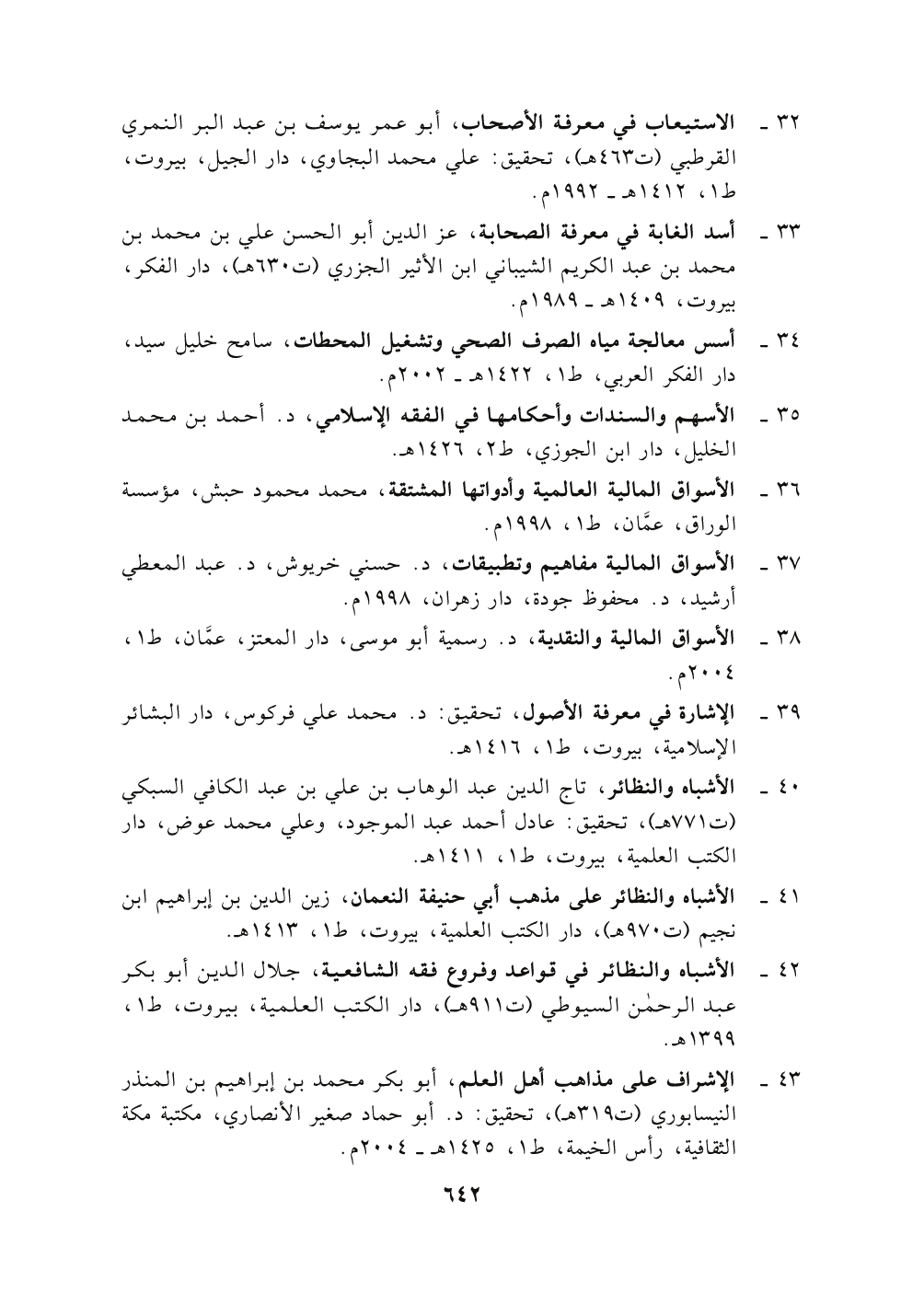٣٨. الأسواق المالية والنقدية, د. رسمية أبوموسى , دار المعتز , عمَّان، ط ١، ٢٠٠٤ م.