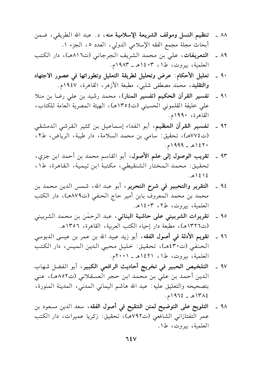 ٨٩. التعريفات ,علي بن محمد الشريف الجرجاني (ت ٨١٦ هـ) , دار الكتب العلمية , بيروت, ط ١ , ١٤٠٣ هـ -١٩٨٣ م.