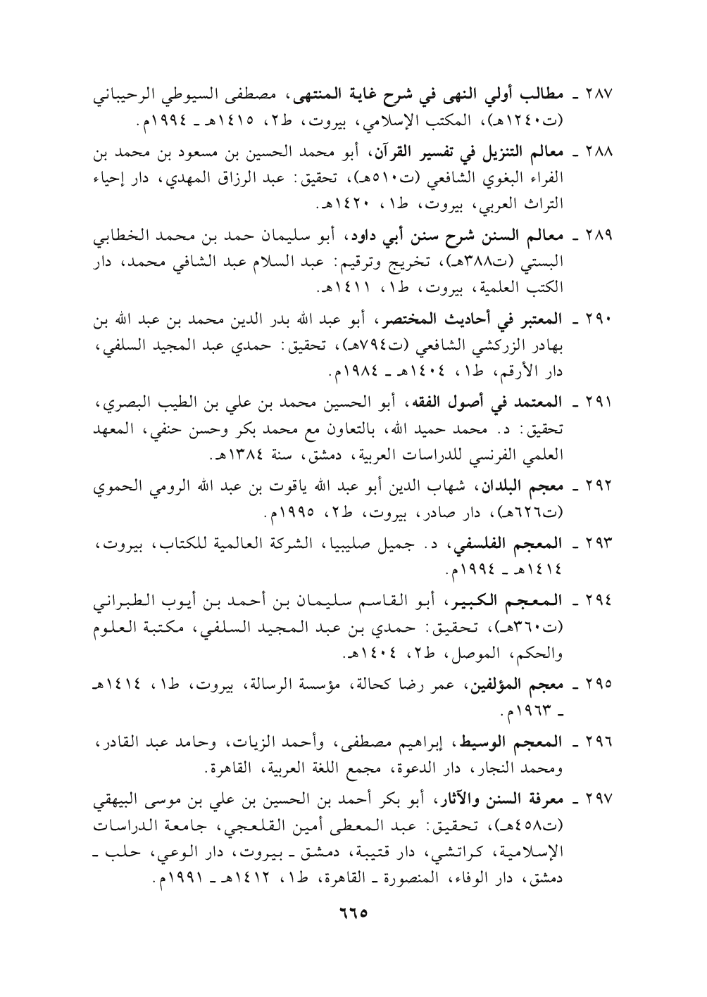 ٢٨٧. مطالب أولي النهى في شرح غاية المنتهى , مصطفى السيوطي الرحيباني (ت ١٢٤٠ هـ) , المكتب الإسلامي , بيروت , ط ٢ , ١٤١٥ هـ - ١٩٩٤ م.