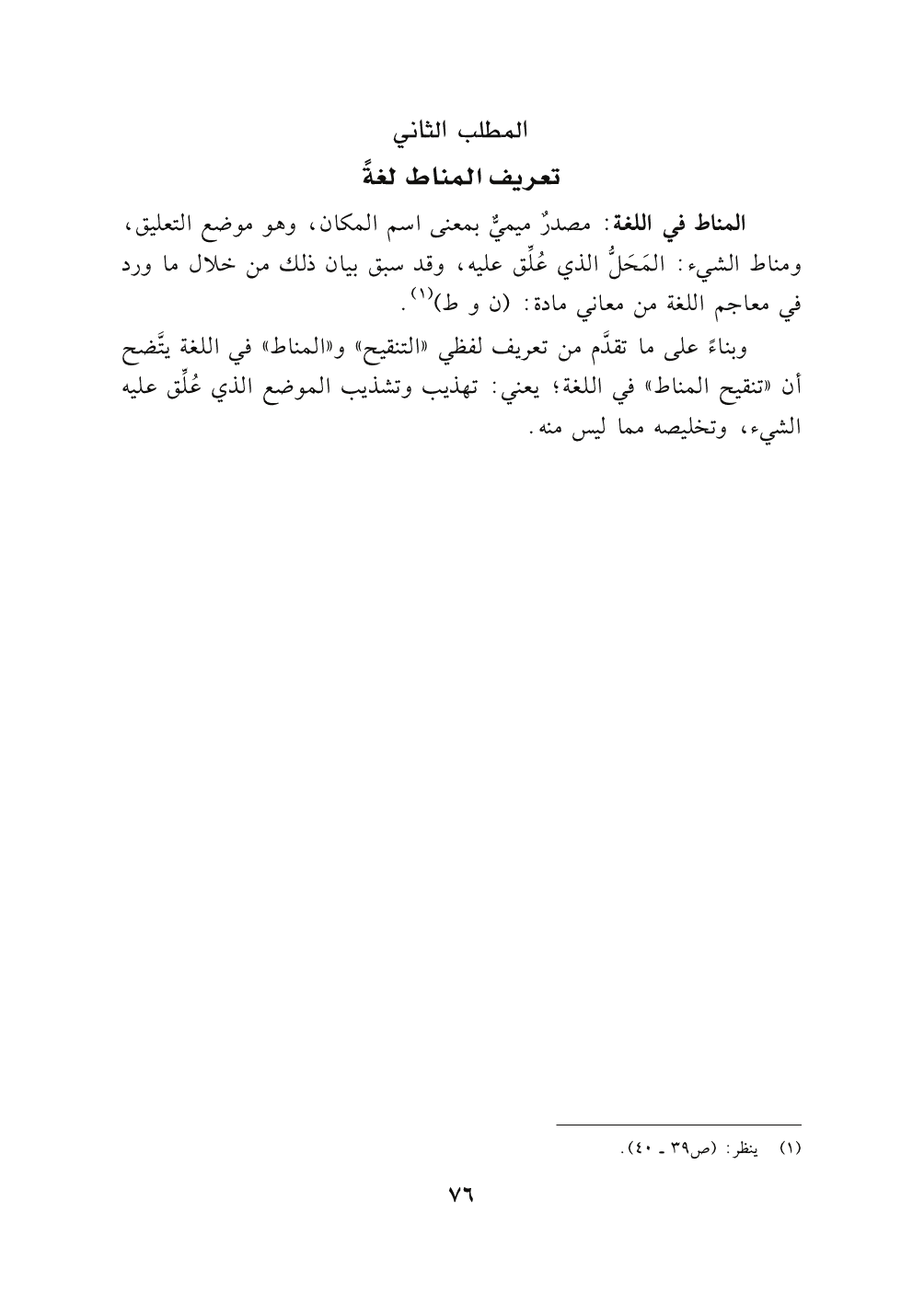 المطلب الثاني: تعريف المناط لغةً.